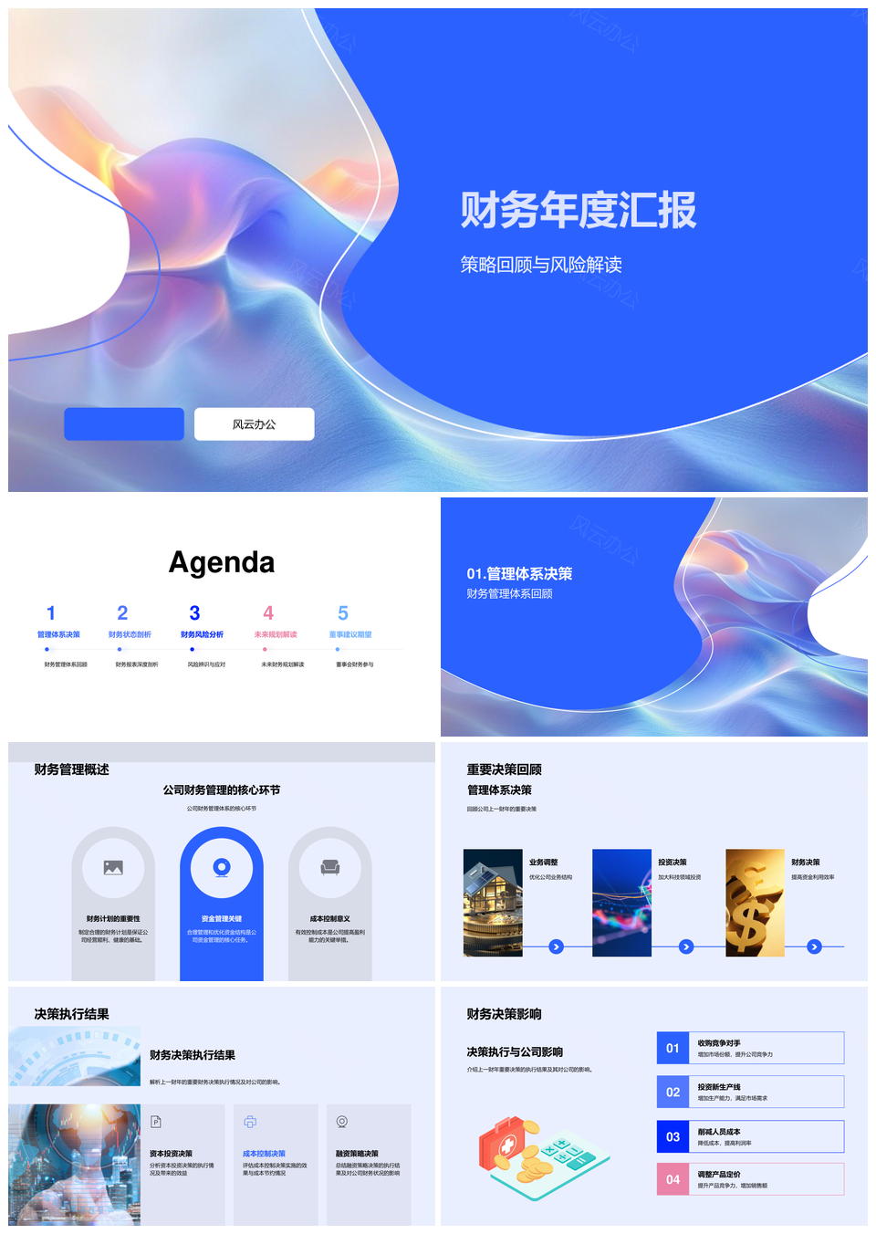 财务年报策略回顾风险解读管理决策报表指标PPT模板推荐