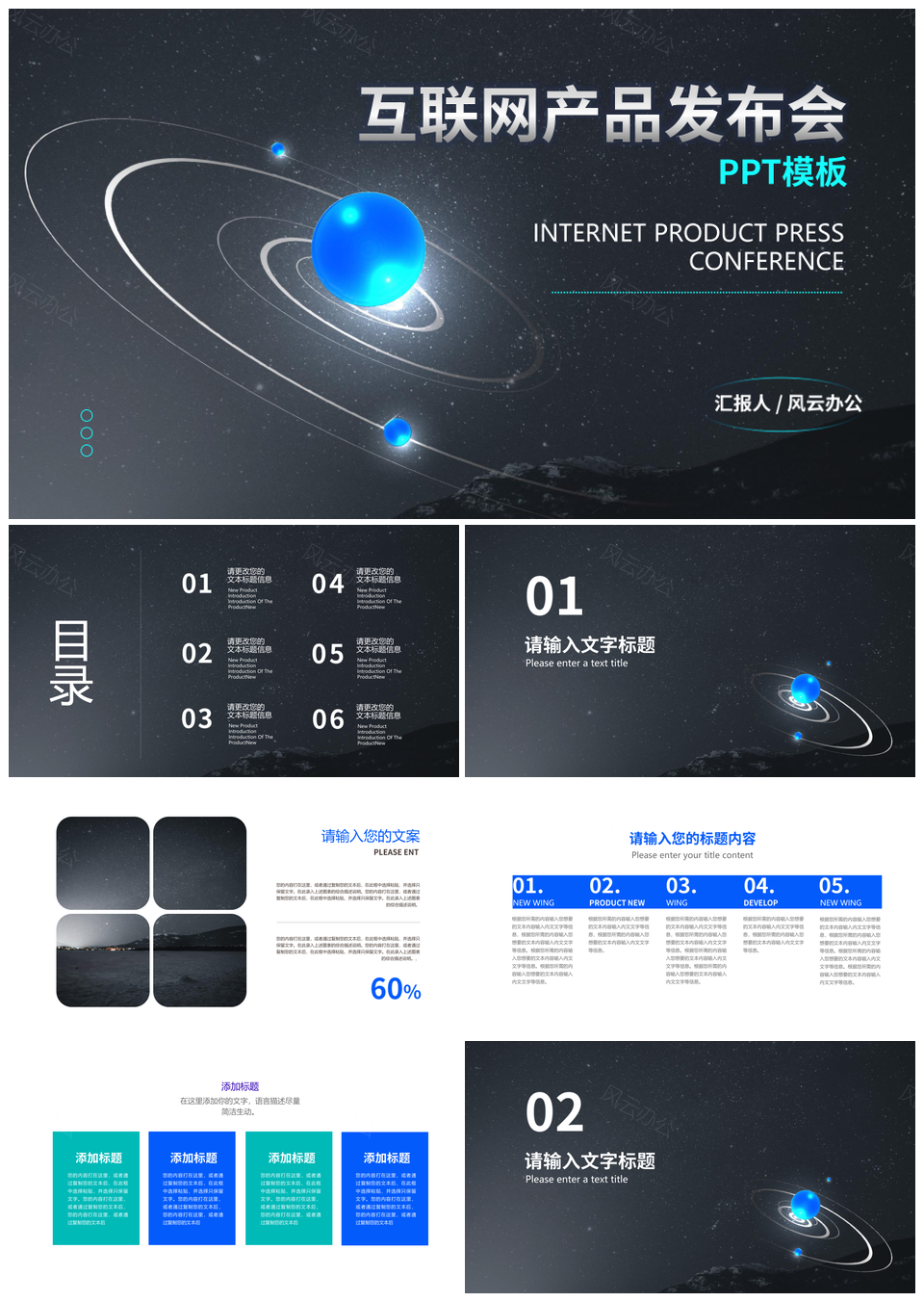 2025蓝色科技互联网商务公司宣传产品发布提案汇报PPT模板