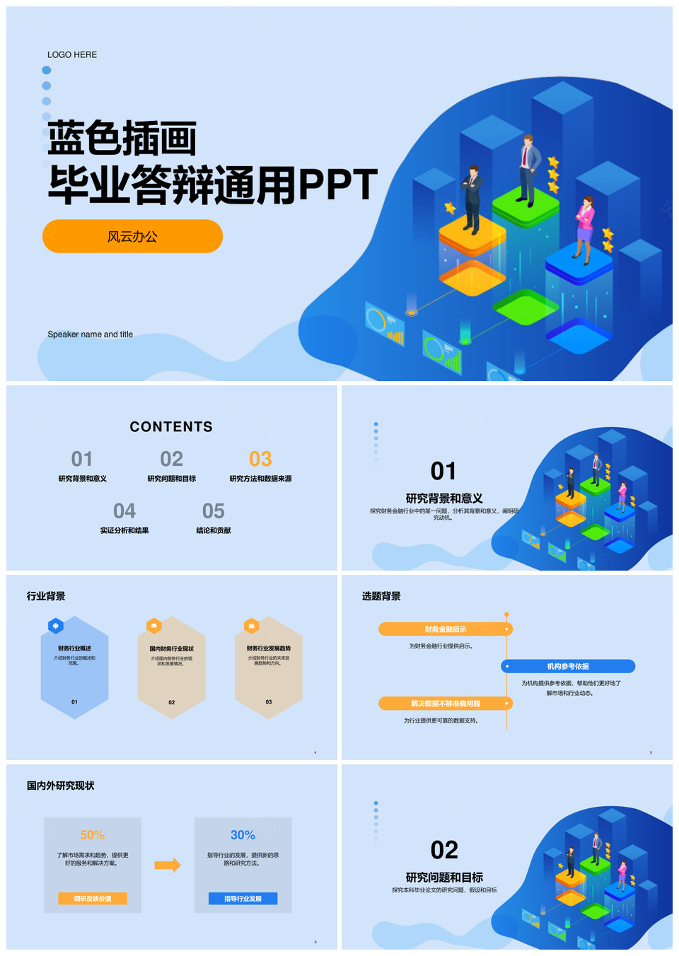 蓝色卡通插画毕业答辩CTR通用PPT模板