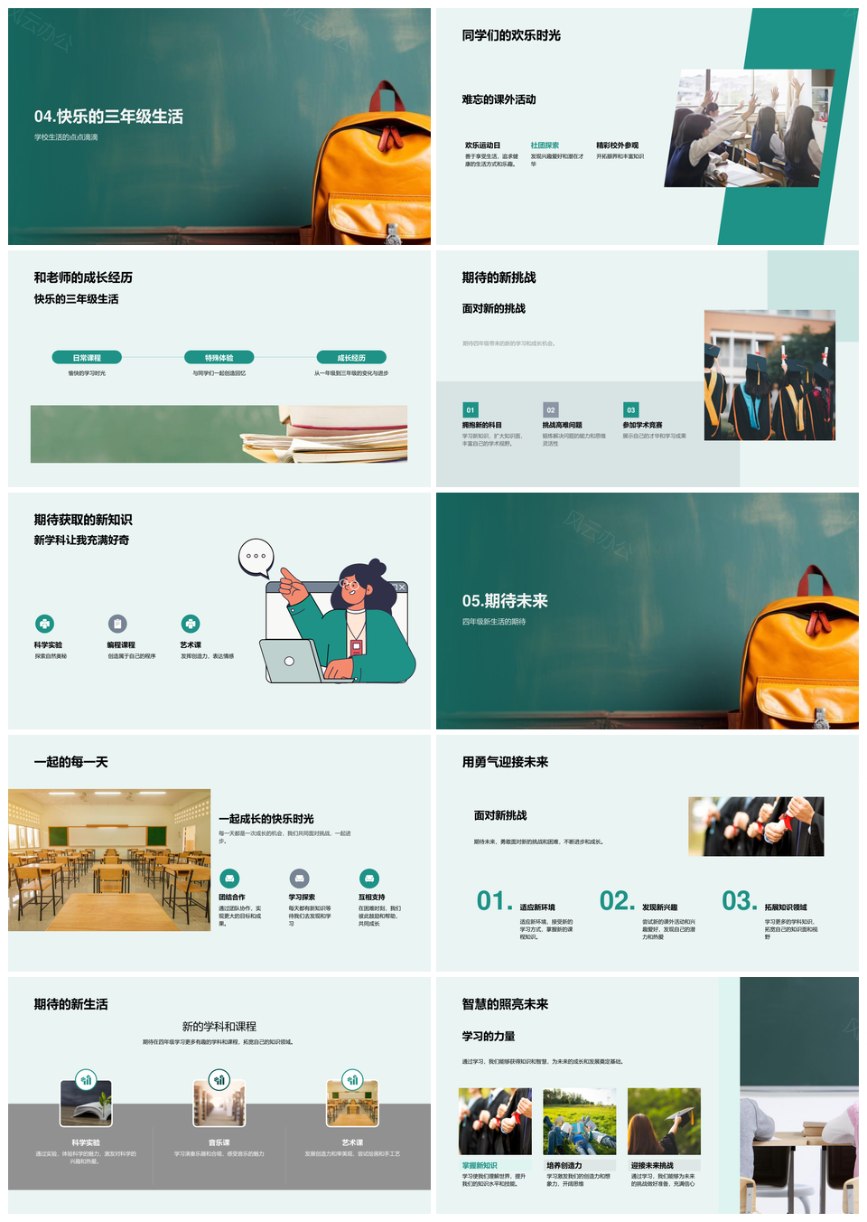 风云办公提供的三年级成长足迹乐学课堂书包之旅PPT模板,下载格式为pptx,一共28页,作品中文字及图均可以修改和编辑,图片更改请在作品中右键图片并更换,文字修改请直接点击文字进行修改。