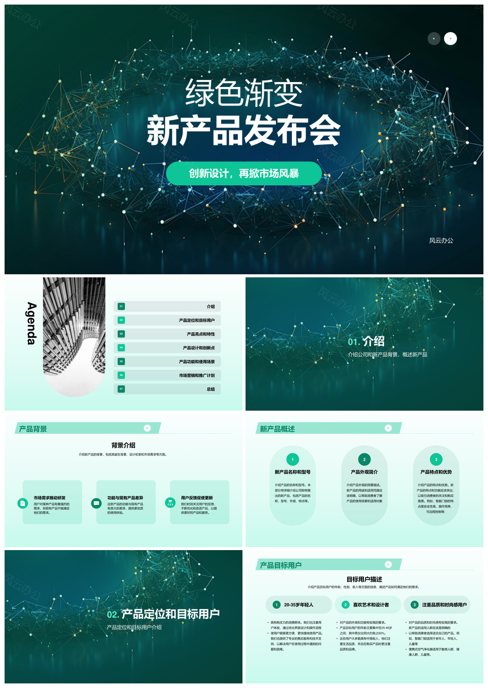 这是一张绿色渐变新品发布盛会PPT模板,包含绿色、渐变、新品、发布、盛会等主题内容,也可用作绿色渐变新品发布盛会、绿色渐变新品发布、渐变新品发布盛会、绿色渐变新品、渐变新品发布、新品发布盛会、绿色新品发布、渐变发布盛会、绿色渐变发布、绿色渐变新品、绿色新品盛会、绿色渐变、渐变新品、新品发布、发布盛会等PPT场景使用。 风云办公提供的绿色渐变新品发布盛会PPT模板,下载格式为pptx,一共20页,作品中文字及图均可以修改和编辑,图片更改请在作品中右键图片并更换,文字修改请直接点击文字进行修改。