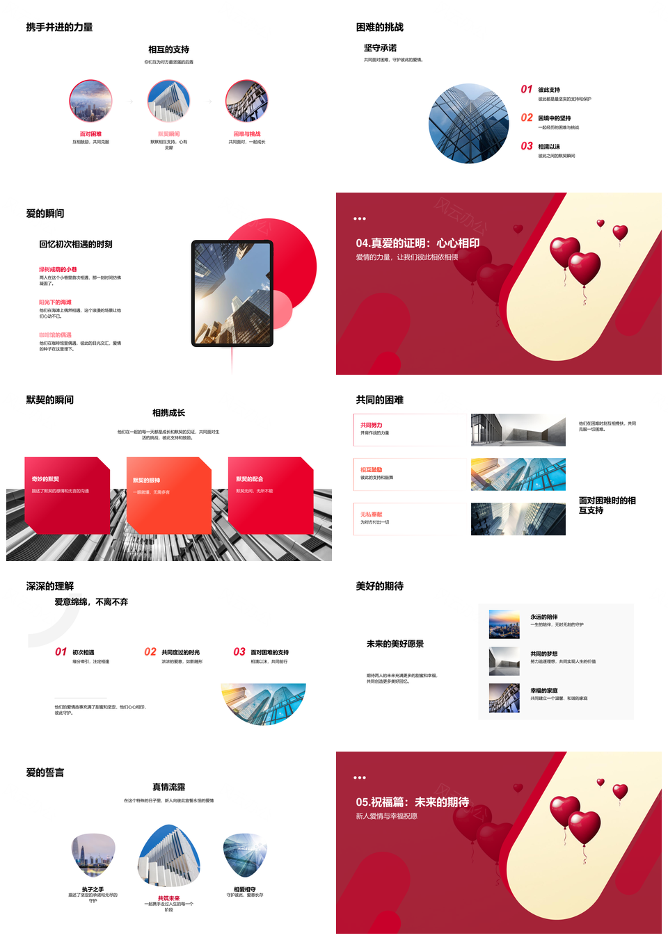 爱情旅程初遇约会旅行求婚心形气球新婚未来PPT模板