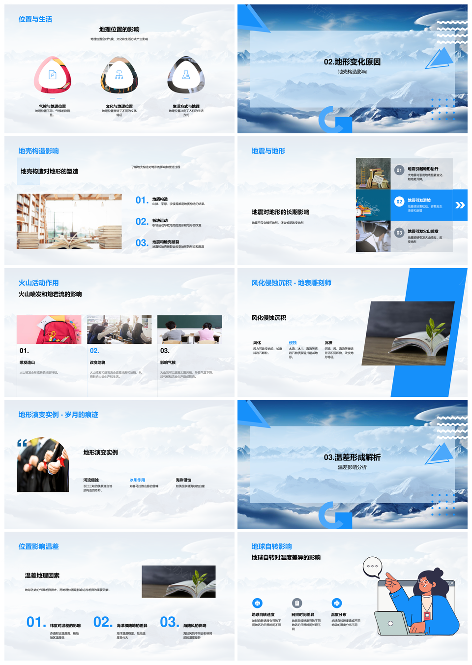 风云办公提供的地球形态地壳气候灾害风化温差解析PPT模板,下载格式为pptx,一共33页,作品中文字及图均可以修改和编辑,图片更改请在作品中右键图片并更换,文字修改请直接点击文字进行修改。
