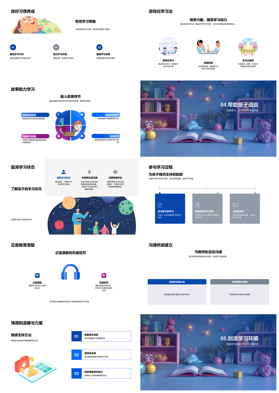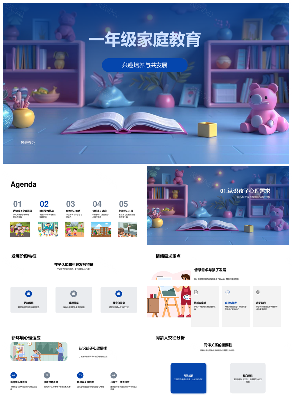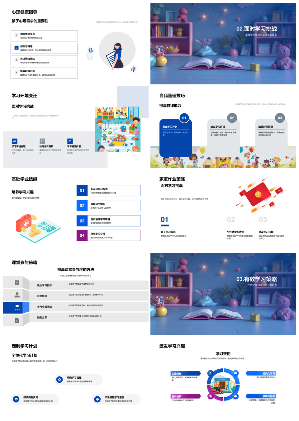 一年级家庭教育品德学习习惯认知社交育儿策略PPT模板