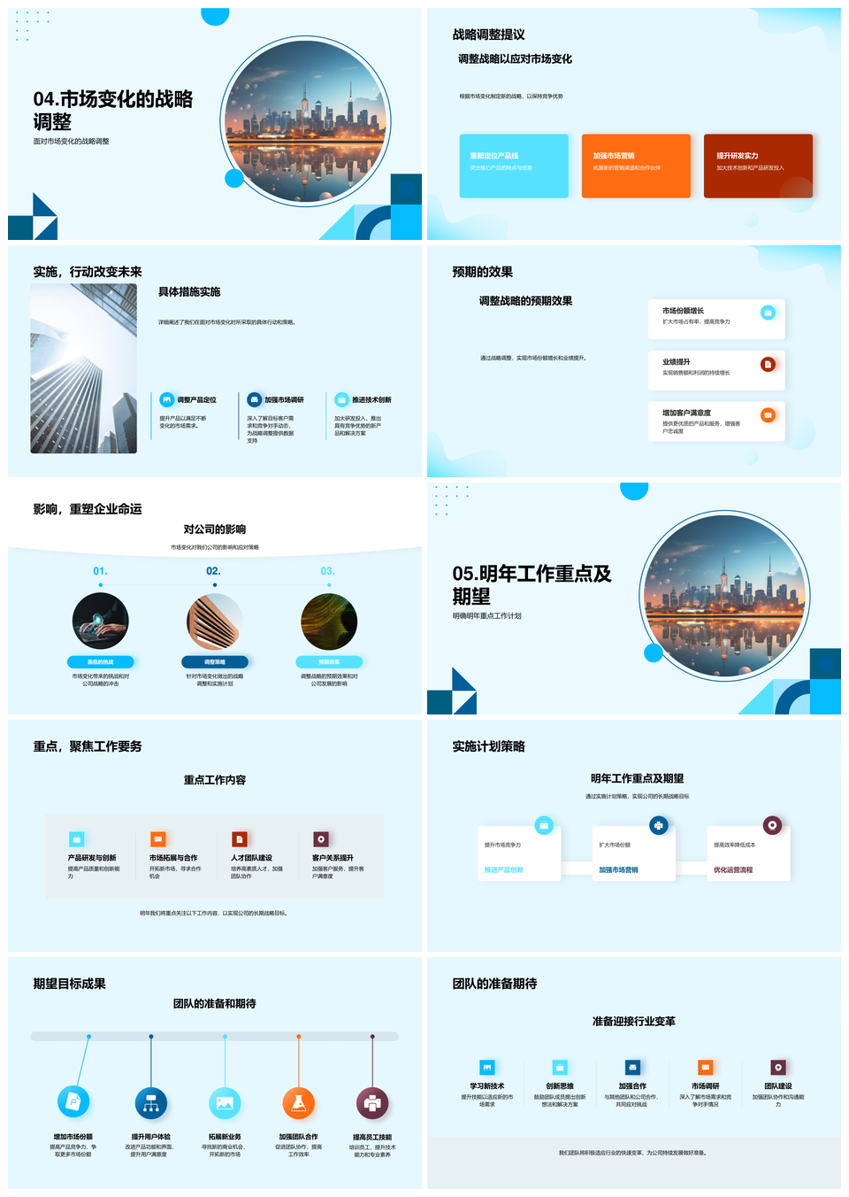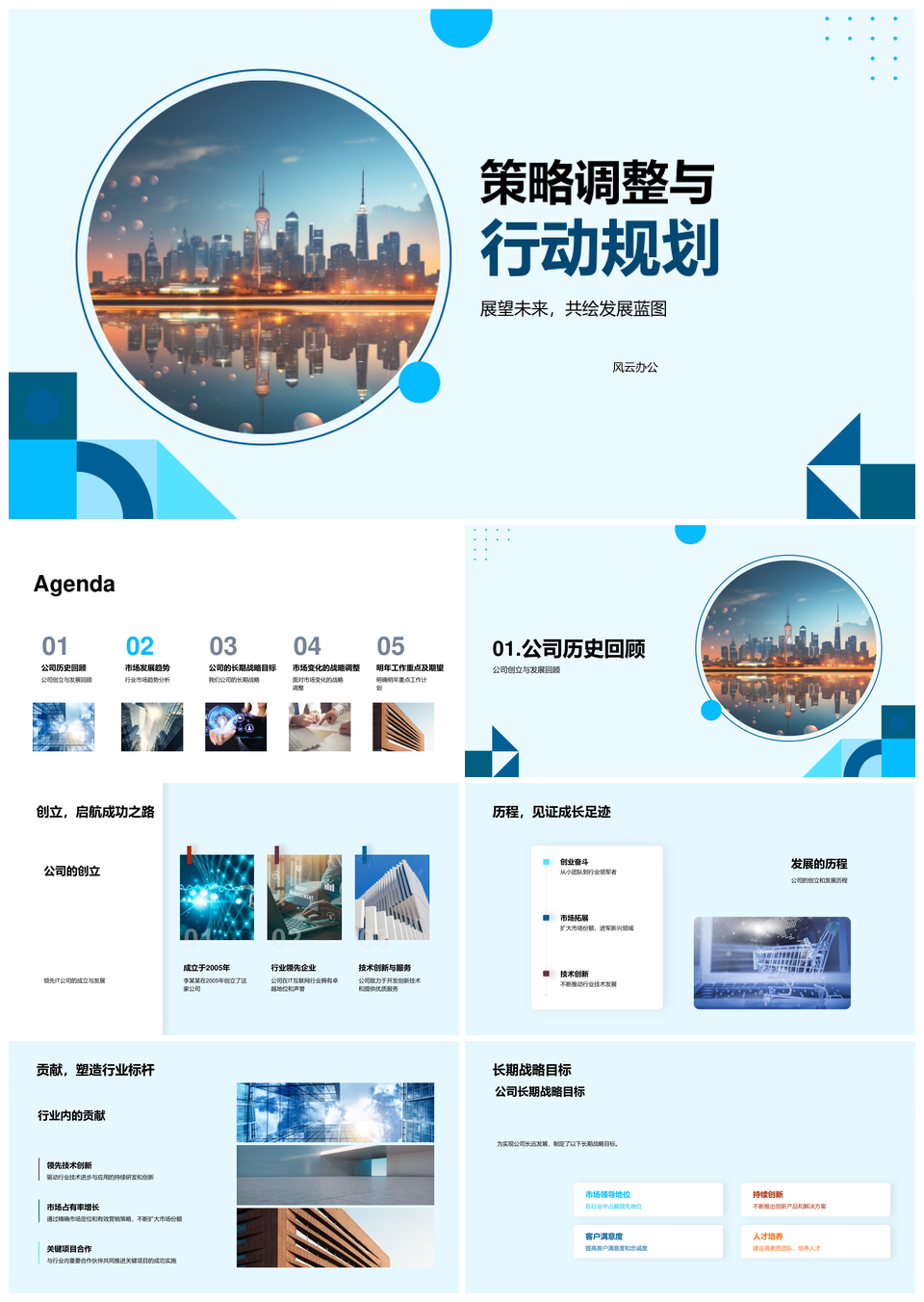 这是一张策略调整行动规划公司历史市场趋势未来城市PPT模板,包含策略调整、行动规划、公司历史、市场趋势、未来城市等主题内容,也可用作策略调整行动规划、调整行动规划公司、行动规划公司历史、规划公司历史市场、公司历史市场趋势、历史市场趋势未来、市场趋势未来城市、策略调整行动、调整行动规划、行动规划公司、规划公司历史、公司历史市场、历史市场趋势、市场趋势未来、未来城市等PPT场景使用。 风云办公提供的策略调整行动规划公司历史市场趋势未来城市PPT模板,下载格式为pptx,一共29页,作品中文字及图均可以修改和编辑,图片更改请在作品中右键图片并更换,文字修改请直接点击文字进行修改。