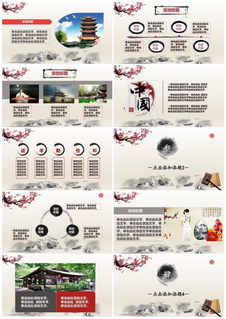 这是一张中国风中国传统文化经典PPT模板,包含中国风、中国传统文化、经典等主题内容,也可用作中国风、中国、传统文化、经典 中国风中国传统文化经典、中国传统文化经典、中国风中国传统文化、中国风传统文化经典、中国传统文化、传统文化经典、中国经典、中国风经典等PPT场景使用。 风云办公提供的中国风中国传统文化经典PPT模板,下载格式为pptx,一共1页,作品中文字及图均可以修改和编辑,图片更改请在作品中右键图片并更换,文字修改请直接点击文字进行修改。