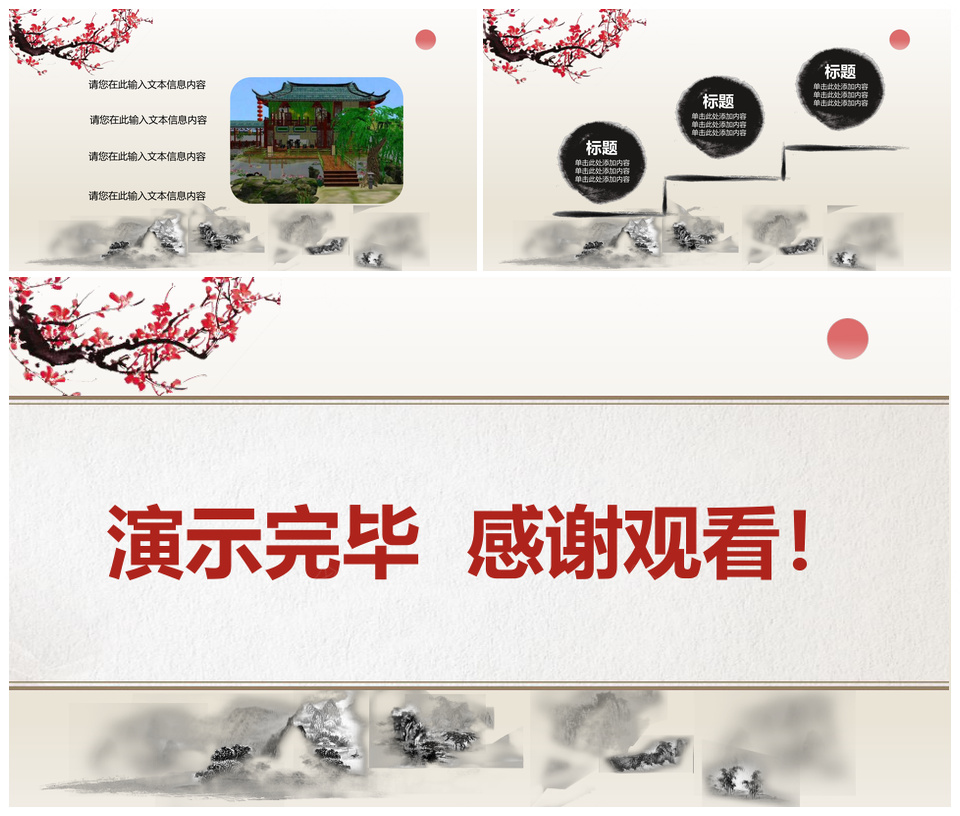 灰色中国风复古水墨经典商务通用汇报PPT模板