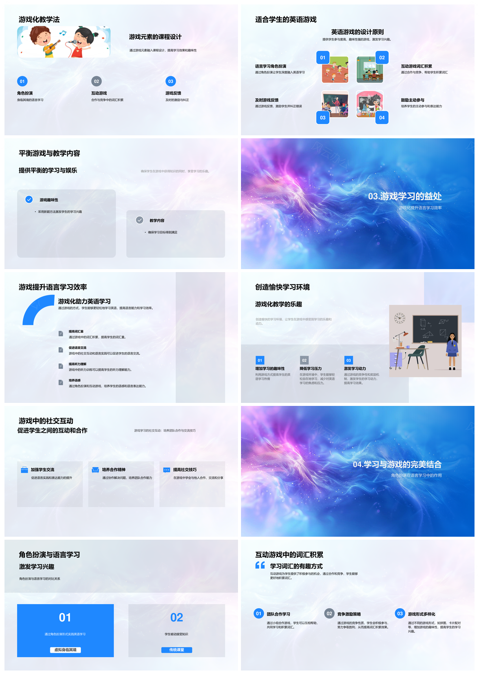 这是一张游戏化英语一年级课程设计游戏元素激趣PPT模板,包含游戏化、英语、一年级、课程、设计、游戏元素、激趣等主题内容,也可用作游戏化英语一年级课程、游戏化英语课程设计、英语一年级课程设计、游戏化英语一年级、游戏化英语课程、英语一年级课程、一年级课程设计、游戏化一年级课程、课程设计游戏、设计游戏元素、游戏元素激趣、游戏化英语、英语一年级、一年级课程、课程设计等PPT场景使用。 风云办公提供的游戏化英语一年级课程设计游戏元素激趣PPT模板,下载格式为pptx,一共23页,作品中文字及图均可以修改和编辑,图片更改请在作品中右键图片并更换,文字修改请直接点击文字进行修改。