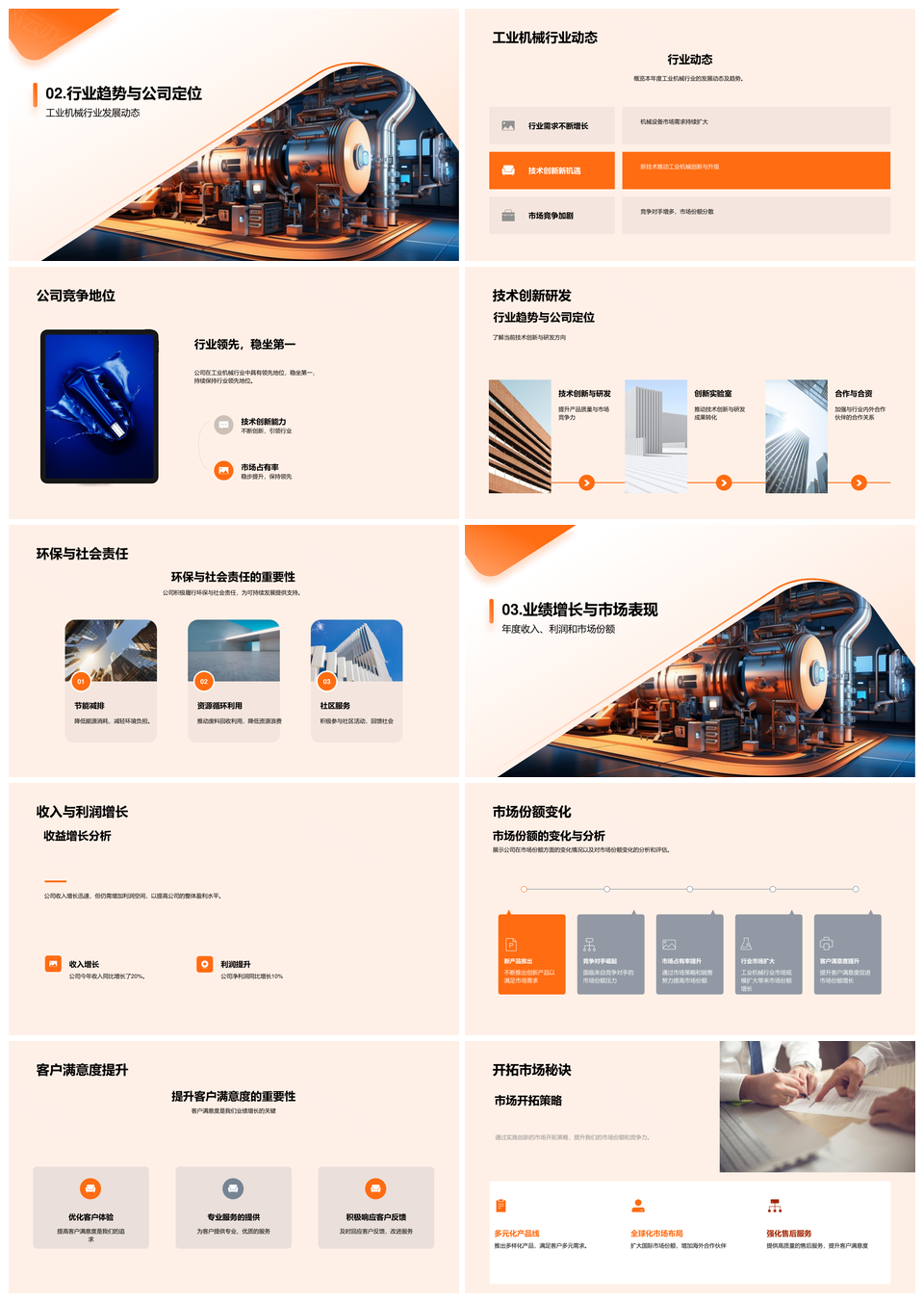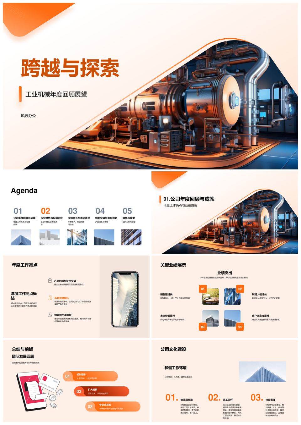 风云办公提供的工业机械年度跨越成就与创新文化探索PPT模板,下载格式为pptx,一共28页,作品中文字及图均可以修改和编辑,图片更改请在作品中右键图片并更换,文字修改请直接点击文字进行修改。