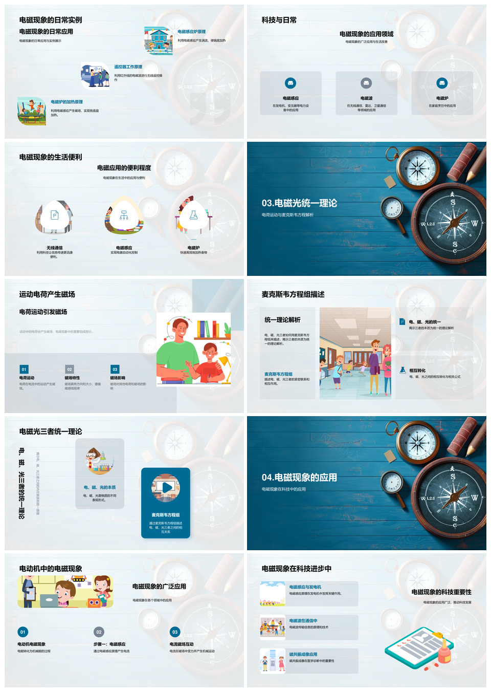 2025初三物理电磁理论教学电磁场麦氏方程机电通信PPT模板推荐