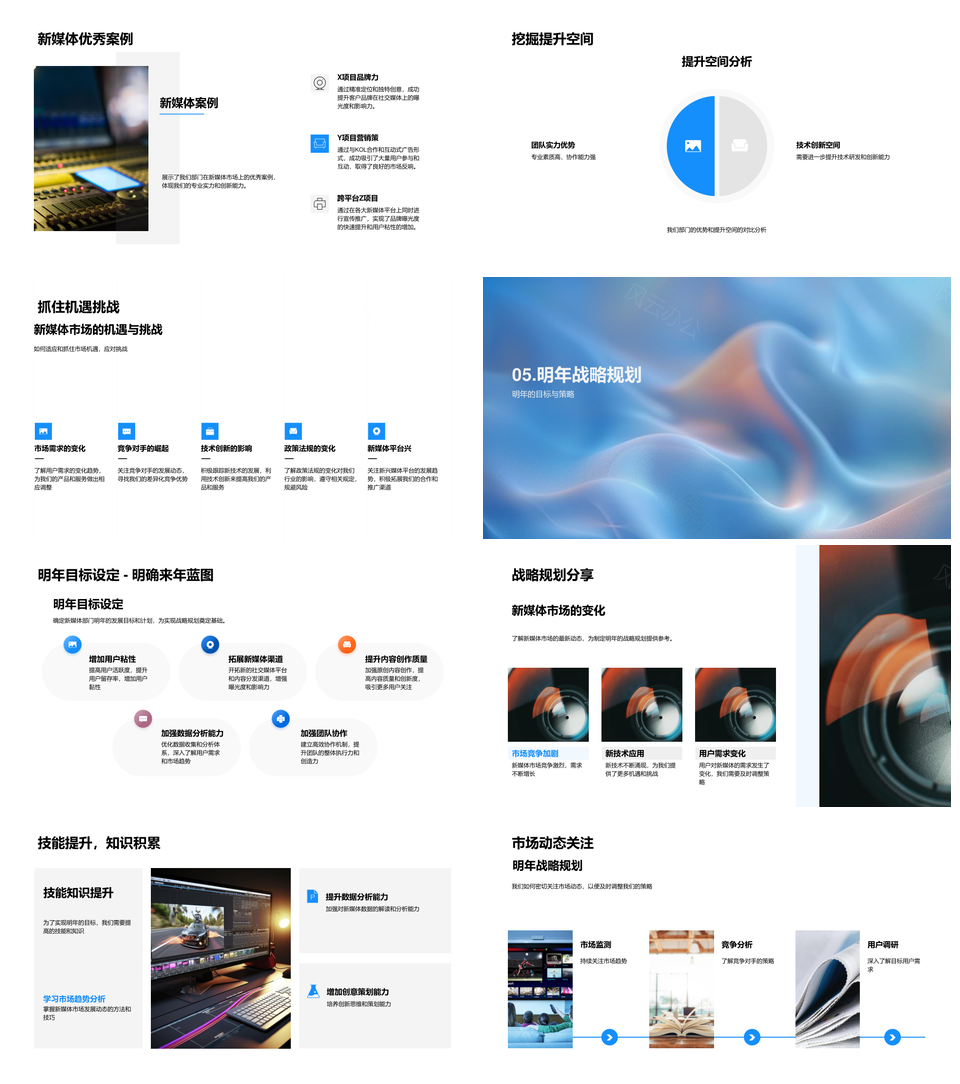 新媒体年度总结行业趋势技术进步市场竞争力数据分析核心策略竞争对手PPT模板