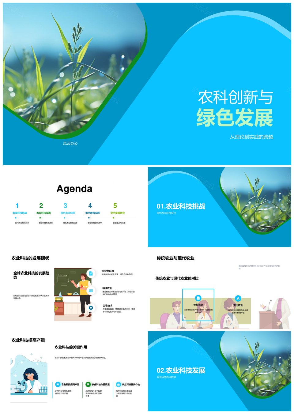 风云办公提供的农科创新驱动绿色农业提质增效PPT模板,下载格式为pptx,一共23页,作品中文字及图均可以修改和编辑,图片更改请在作品中右键图片并更换,文字修改请直接点击文字进行修改。