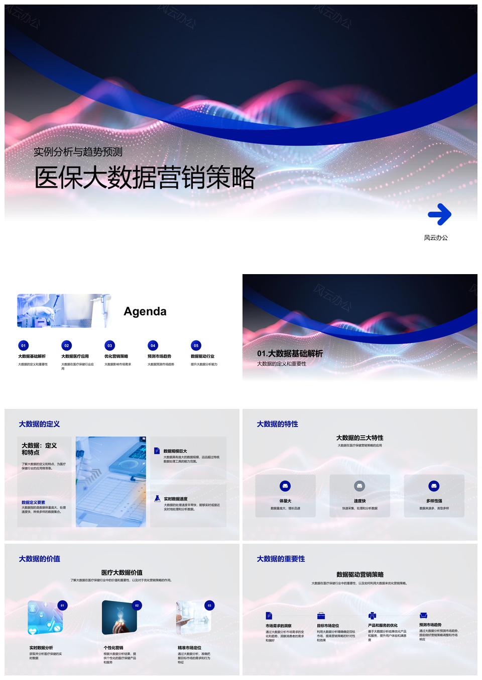 风云办公提供的2025医保大数据医疗保健营销策略PPT模板,下载格式为pptx,一共28页,作品中文字及图均可以修改和编辑,图片更改请在作品中右键图片并更换,文字修改请直接点击文字进行修改。