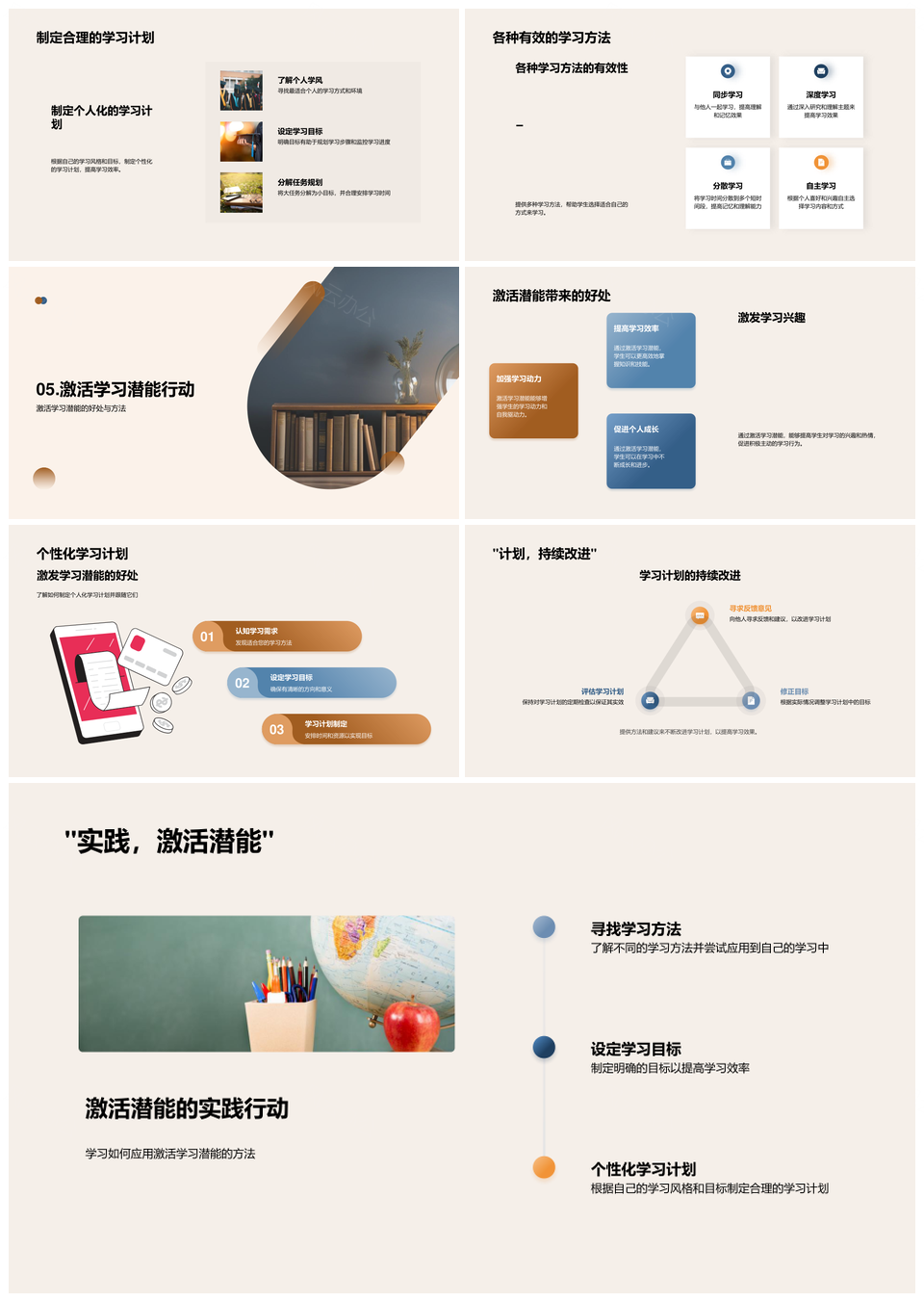 风云办公提供的激活学习潜能高效动力计划PPT模板,下载格式为pptx,一共25页,作品中文字及图均可以修改和编辑,图片更改请在作品中右键图片并更换,文字修改请直接点击文字进行修改。