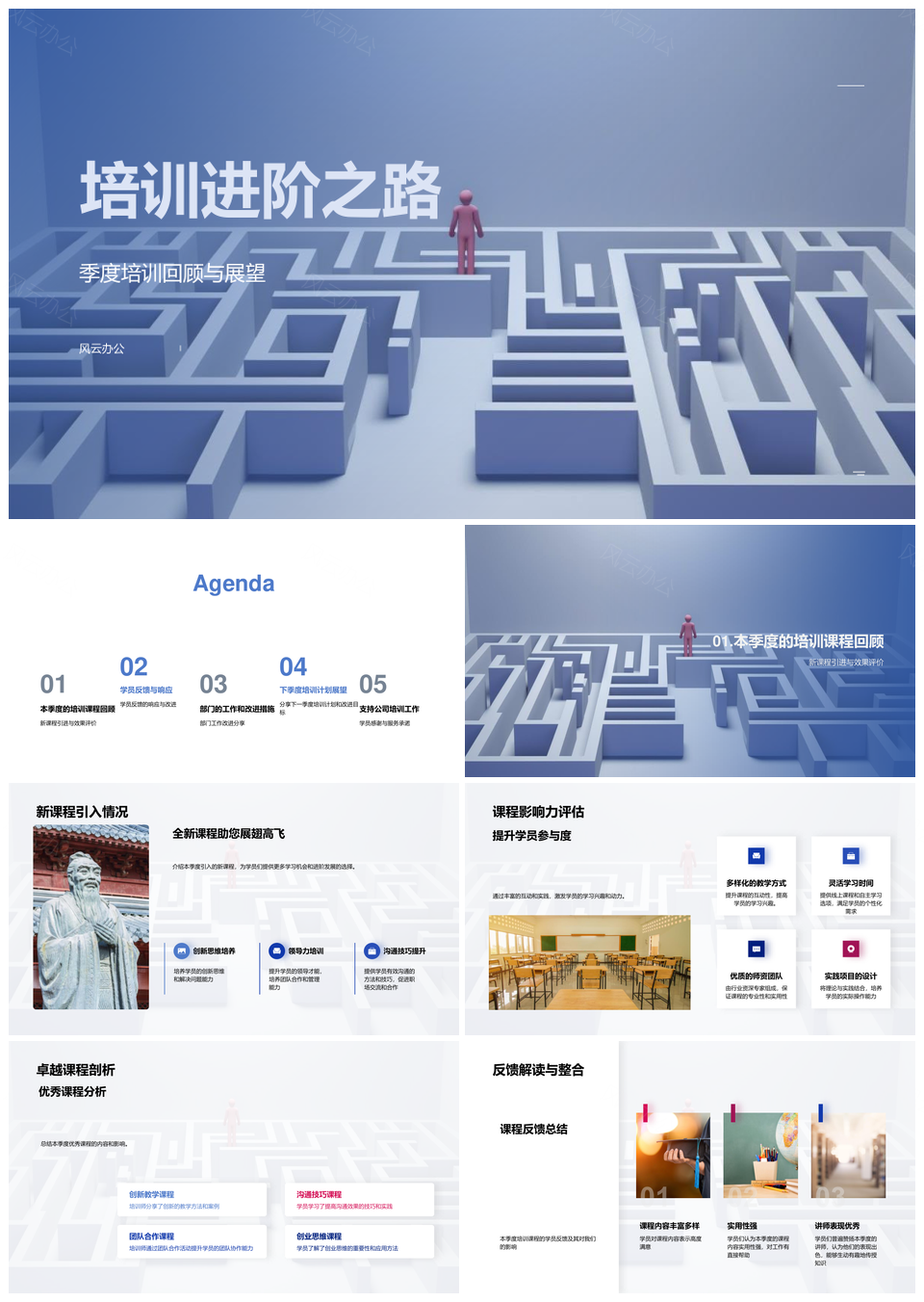 这是一张培训进阶新课程评估反馈改进下季计划服务优化PPT模板,包含培训、进阶、新课程、评估、反馈、改进、下季计划、服务优化等主题内容,也可用作培训进阶新课程评估、进阶新课程评估反馈、新课程评估反馈改进、评估反馈改进下季、反馈改进下季计划、改进下季计划服务、下季计划服务优化、培训进阶新课程、进阶新课程评估、新课程评估反馈、评估反馈改进、反馈改进下季、改进下季计划、下季计划服务、计划服务优化等PPT场景使用。 风云办公提供的培训进阶新课程评估反馈改进下季计划服务优化PPT模板,下载格式为pptx,一共33页,作品中文字及图均可以修改和编辑,图片更改请在作品中右键图片并更换,文字修改请直接点击文字进行修改。