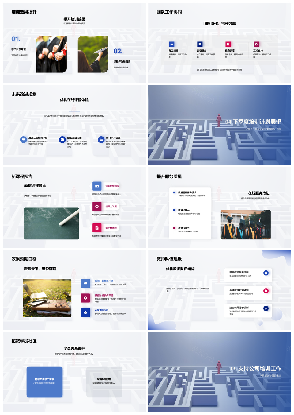 培训进阶新课程评估反馈改进下季计划服务优化PPT模板