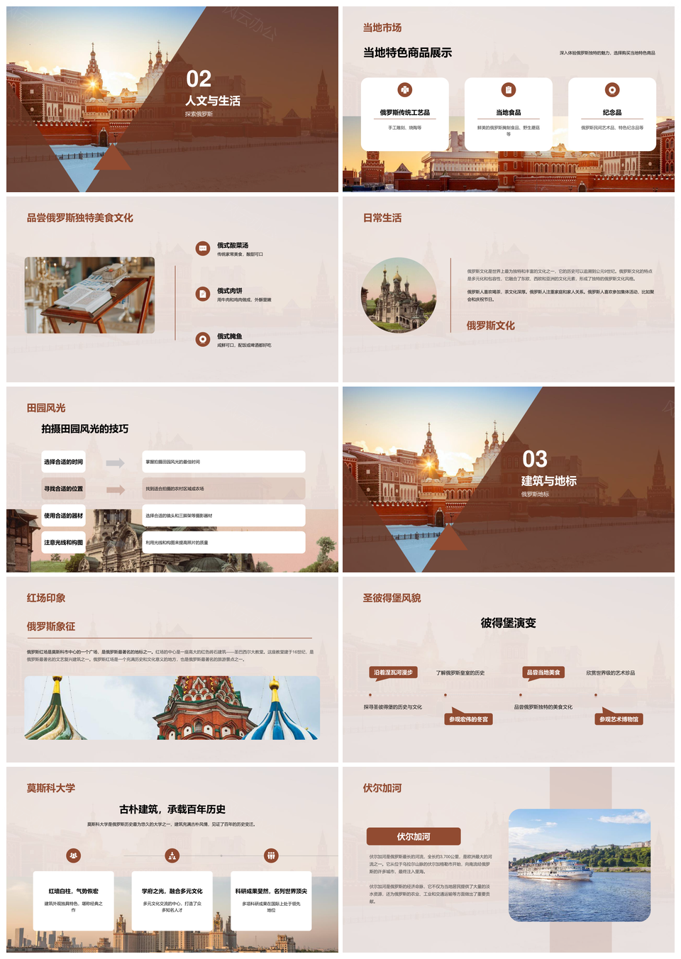 风云办公提供的红色俄罗斯建筑之美旅游科普攻略PPT模板,下载格式为pptx,一共26页,作品中文字及图均可以修改和编辑,图片更改请在作品中右键图片并更换,文字修改请直接点击文字进行修改。