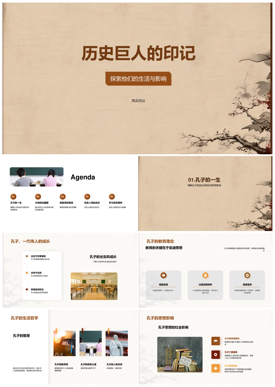 风云办公提供的历史巨人遗教武略哲思古卷PPT模板,下载格式为pptx,一共28页,作品中文字及图均可以修改和编辑,图片更改请在作品中右键图片并更换,文字修改请直接点击文字进行修改。