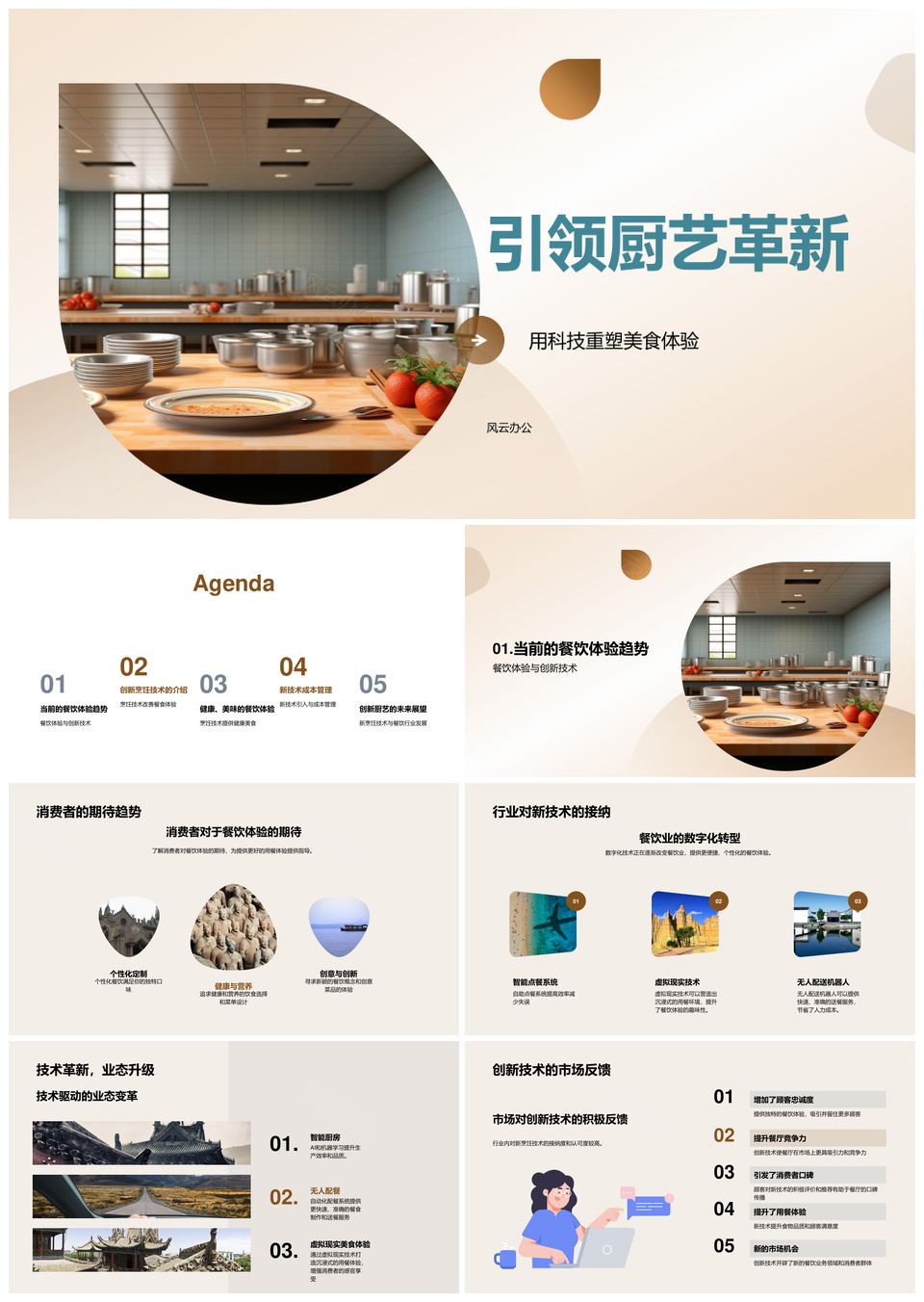 风云办公提供的科技革新厨艺打造美味营养新体验PPT模板,下载格式为pptx,一共28页,作品中文字及图均可以修改和编辑,图片更改请在作品中右键图片并更换,文字修改请直接点击文字进行修改。