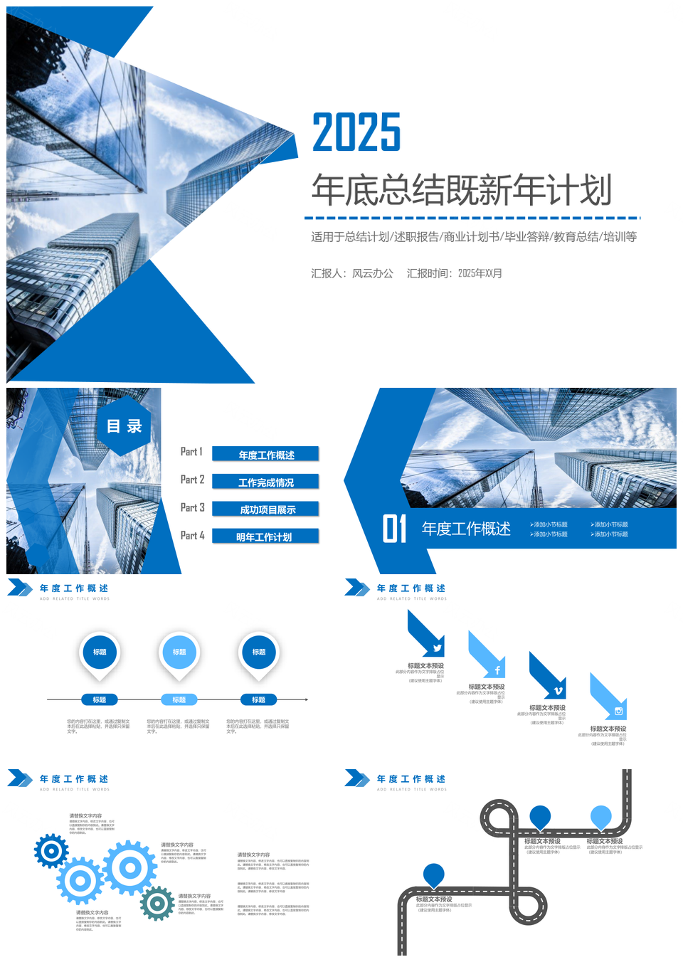 2025蓝色新年工作汇报工作计划PPT模板