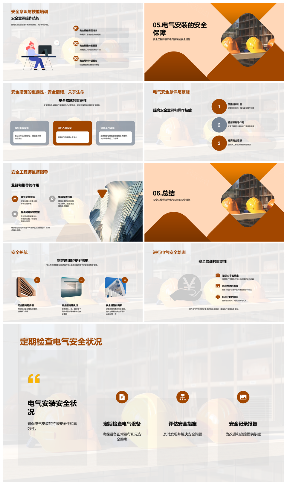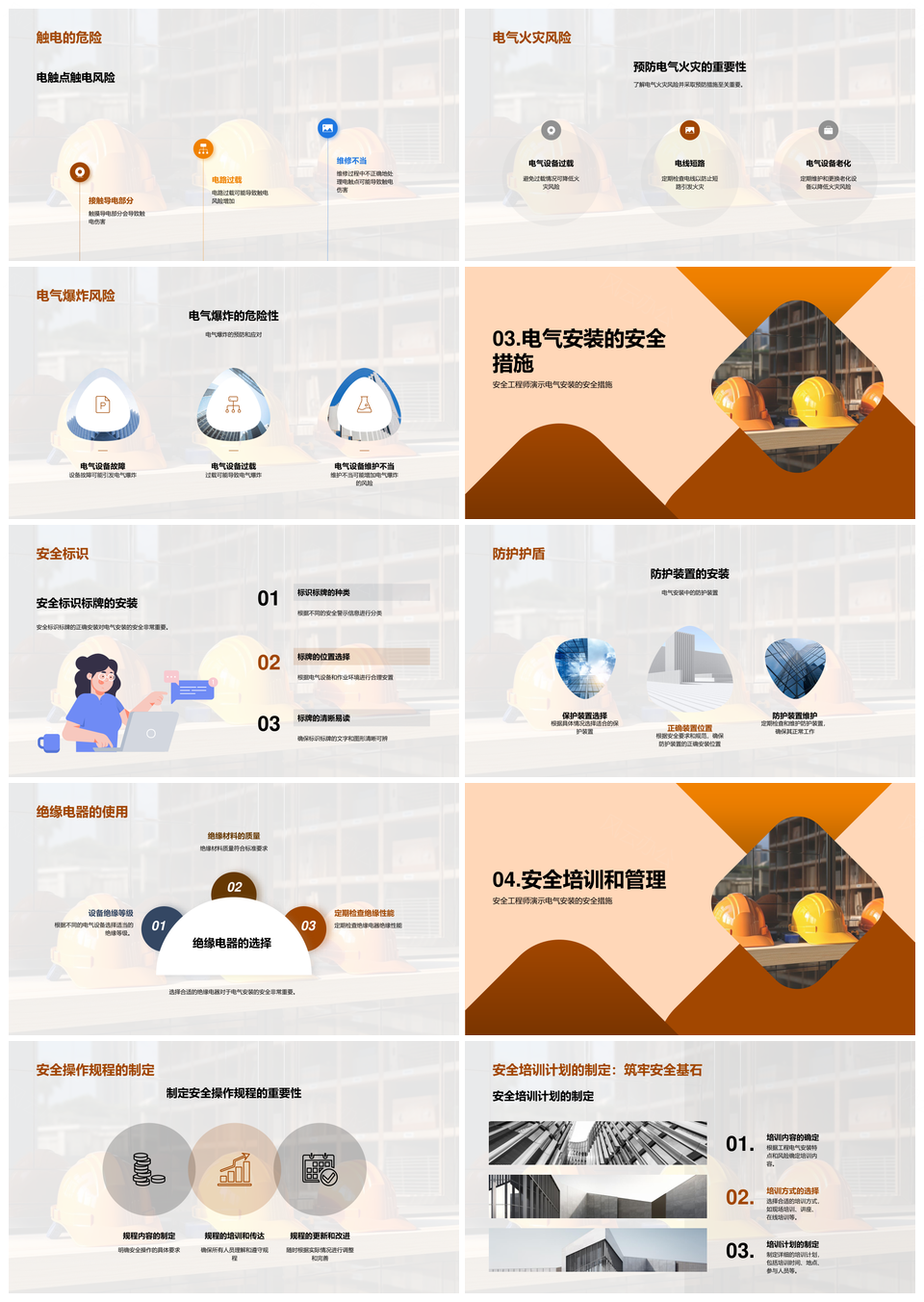 这是一张电气施工安全工程师安装措施管理培训设备风险PPT模板,包含电气施工、安全工程师、安装措施、管理、培训、设备、风险等主题内容,也可用作电气施工安全工程师、施工安全工程师安装、安全工程师安装措施、工程师安装措施管理、安装措施管理培训、措施管理培训设备、管理培训设备风险、电气施工安全、施工安全工程师、安全工程师安装、工程师安装措施、安装措施管理、措施管理培训、管理培训设备、培训设备风险等PPT场景使用。 风云办公提供的电气施工安全工程师安装措施管理培训设备风险PPT模板,下载格式为pptx,一共27页,作品中文字及图均可以修改和编辑,图片更改请在作品中右键图片并更换,文字修改请直接点击文字进行修改。