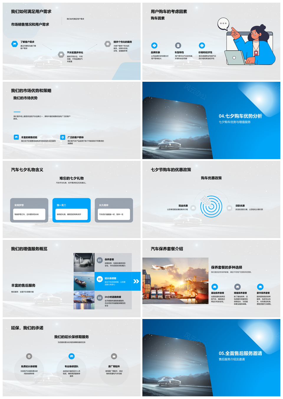 这是一张七夕购车优惠汽车技术保养套餐延长保修期PPT模板,包含七夕、购车、优惠、汽车、技术、保养、套餐、延长、保修期等主题内容,也可用作七夕购车优惠套餐、汽车技术保养套餐、技术保养套餐延长、保养套餐延长保修期、七夕购车优惠汽车、购车优惠汽车技术、优惠汽车技术保养、购车优惠套餐延长、汽车技术延长保修期、七夕购车技术保养、购车优惠保养套餐、汽车保养套餐保修期、七夕购车套餐延长、技术保养延长保修期、购车汽车技术保养等PPT场景使用。 风云办公提供的七夕购车优惠汽车技术保养套餐延长保修期PPT模板,下载格式为pptx,一共33页,作品中文字及图均可以修改和编辑,图片更改请在作品中右键图片并更换,文字修改请直接点击文字进行修改。