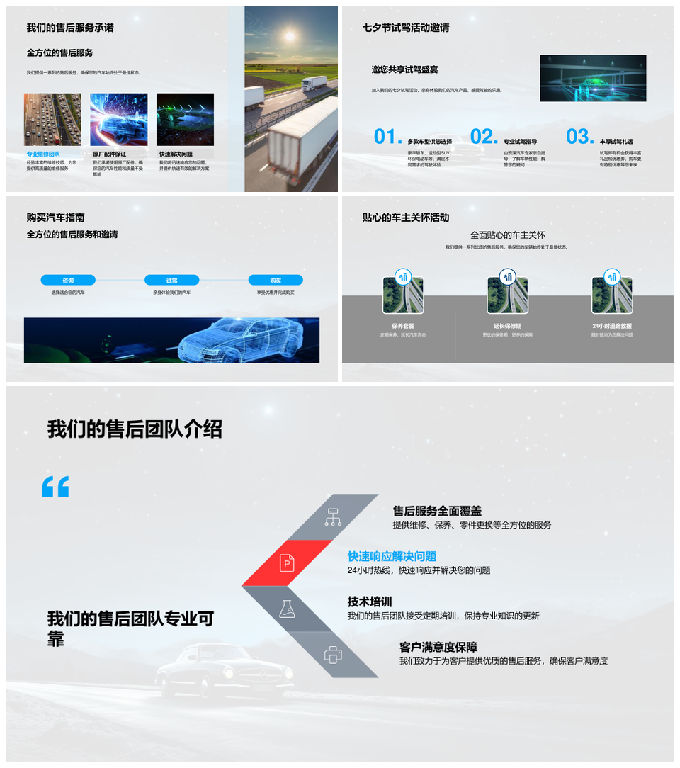 七夕购车优惠汽车技术保养套餐延长保修期PPT模板
