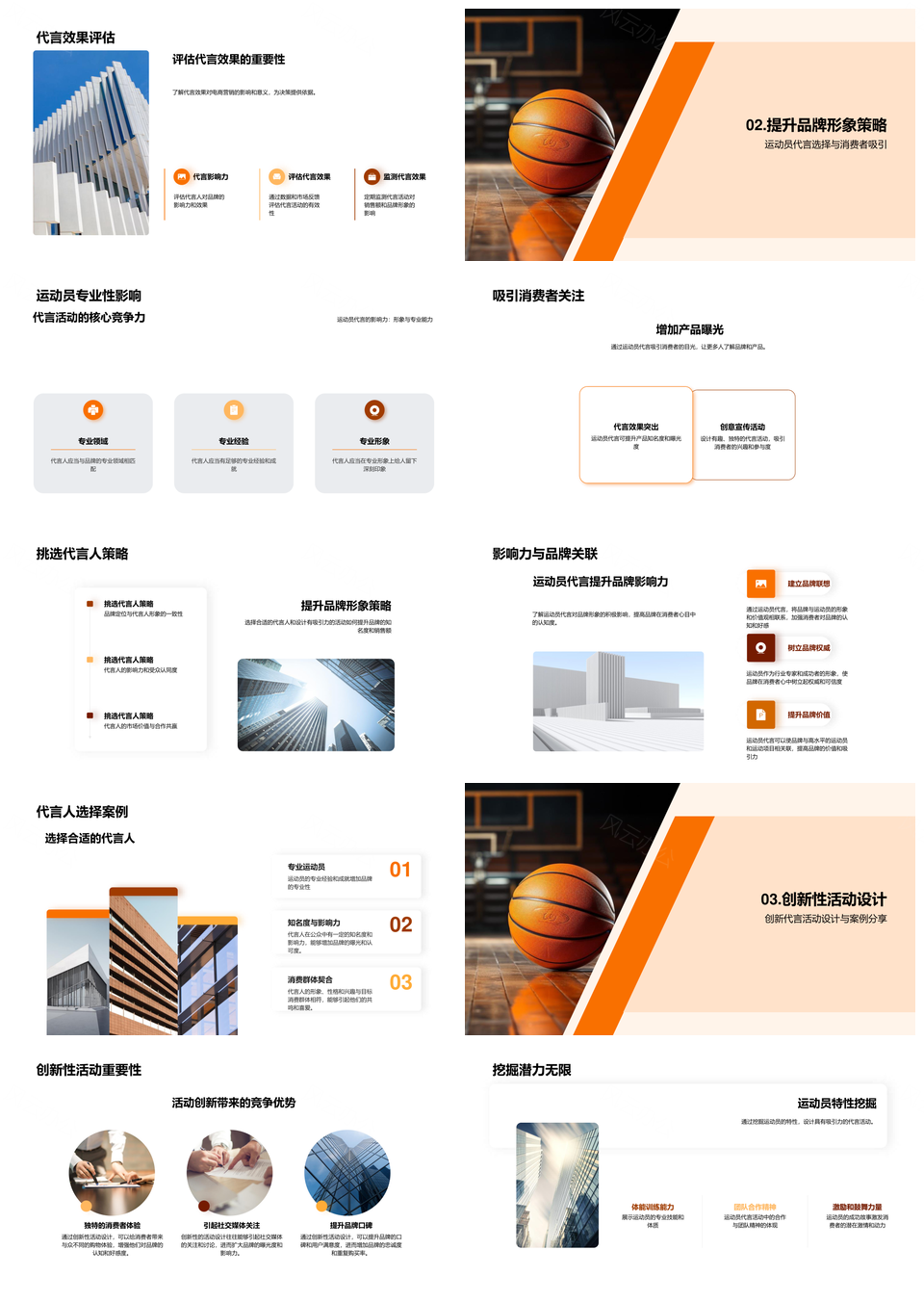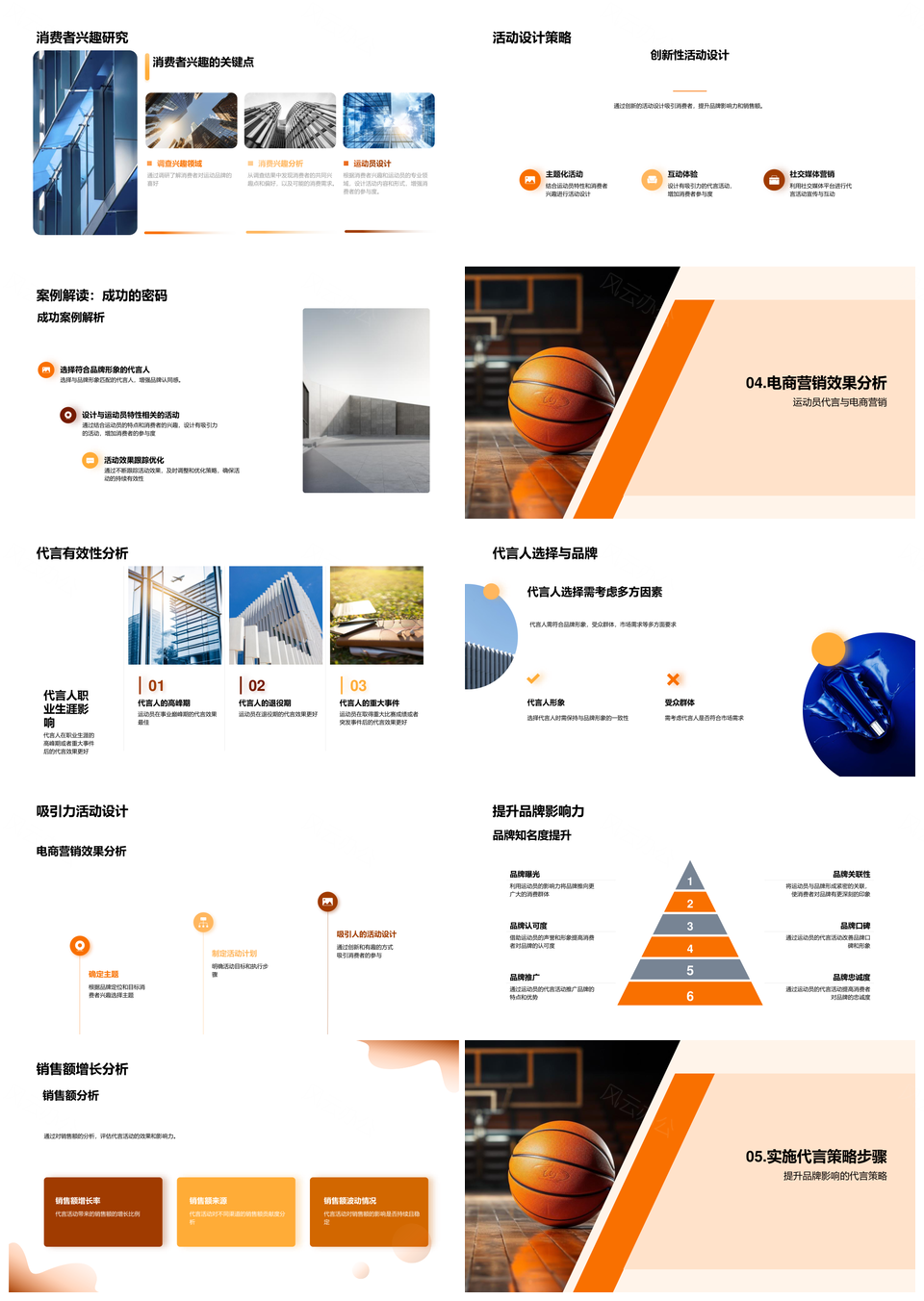 风云办公提供的篮球运动员代言电商营销增效策略PPT模板,下载格式为pptx,一共33页,作品中文字及图均可以修改和编辑,图片更改请在作品中右键图片并更换,文字修改请直接点击文字进行修改。