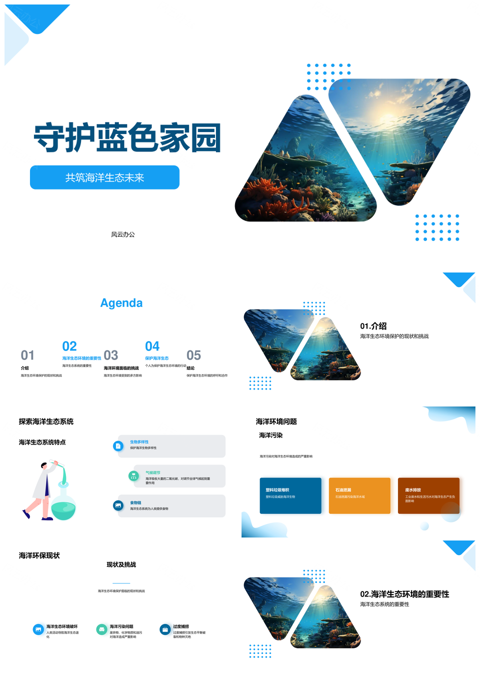 守护蓝色海洋生态专家应对污染捕捞挑战PPT模板推荐