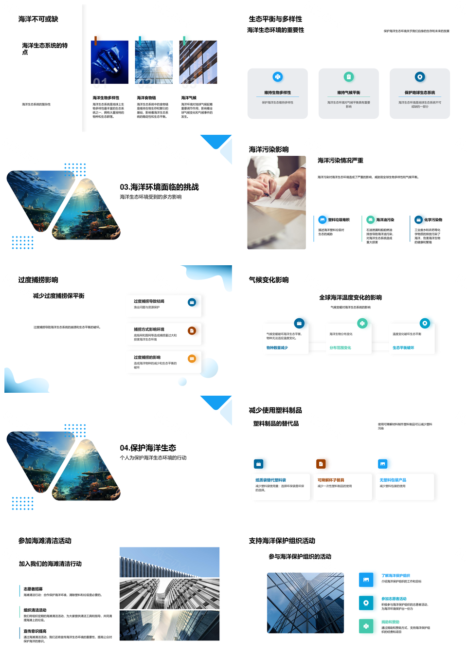 海洋生态系统保护生物多样性应对变暖污染过度捕捞PPT模板