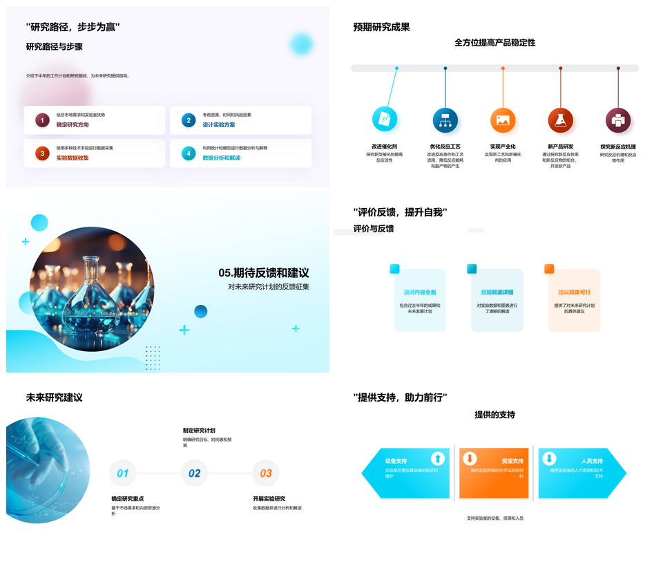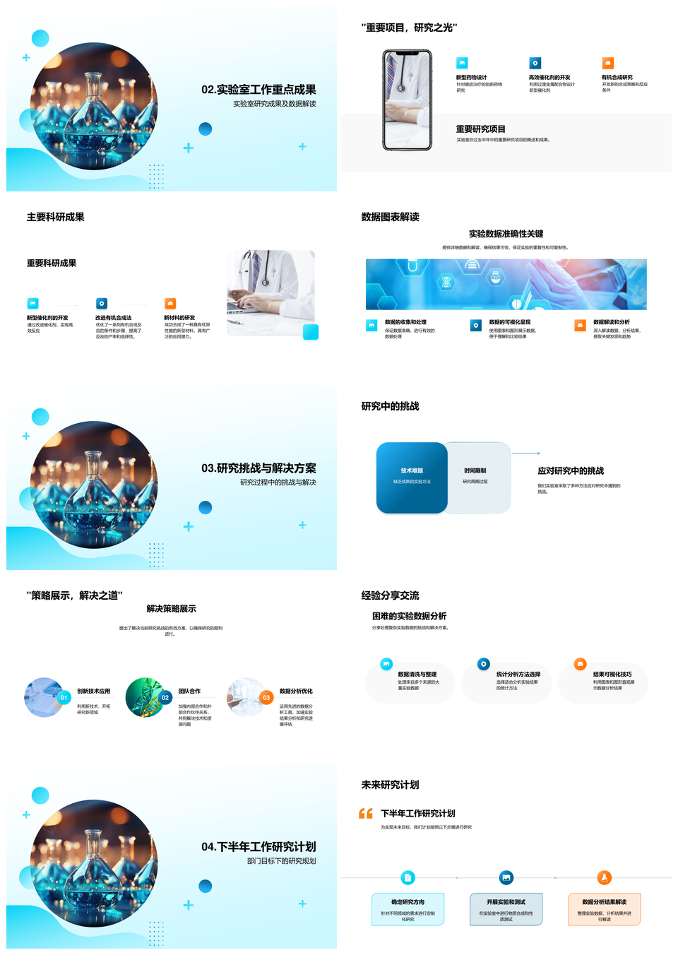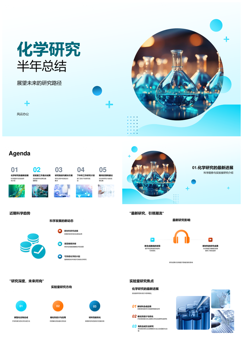 风云办公提供的化学研究半年实验室项目成果与挑战PPT模板,下载格式为pptx,一共24页,作品中文字及图均可以修改和编辑,图片更改请在作品中右键图片并更换,文字修改请直接点击文字进行修改。