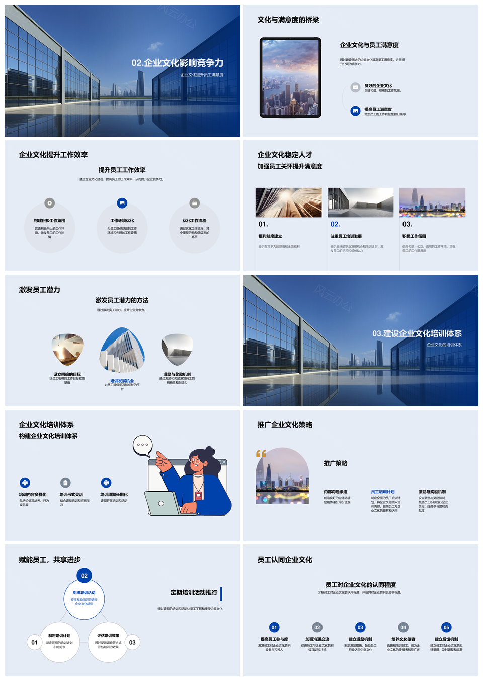 这是一张企业文化培训提升员工满意度增强竞争力PPT模板,包含企业文化、培训、提升、员工满意度、增强、竞争力等主题内容,也可用作培训提升员工满意度、员工满意度增强竞争力、培训提升员工、提升员工满意度、员工满意度增强、满意度增强竞争力、企业文化培训、培训提升、提升员工、员工满意度、满意度增强、增强竞争力、培训员工、提升满意度、企业文化培训提升员工等PPT场景使用。 风云办公提供的企业文化培训提升员工满意度增强竞争力PPT模板,下载格式为pptx,一共28页,作品中文字及图均可以修改和编辑,图片更改请在作品中右键图片并更换,文字修改请直接点击文字进行修改。