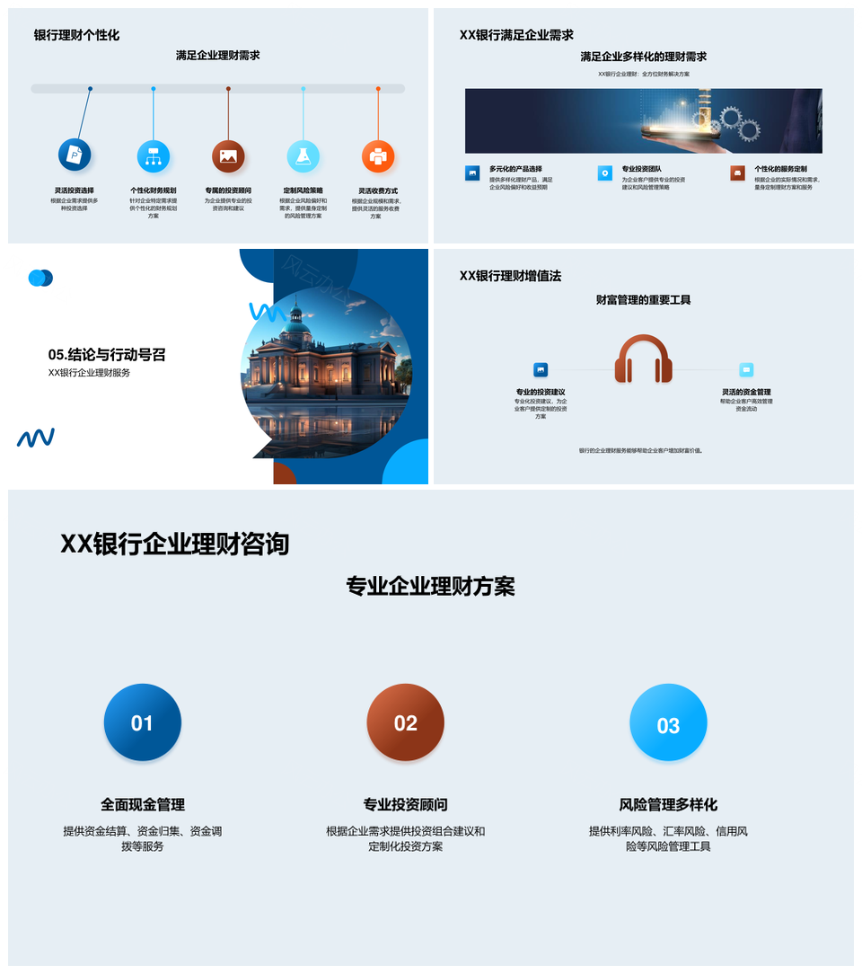 XX银行企业理财顾问风管现金服务成果展PPT模板推荐