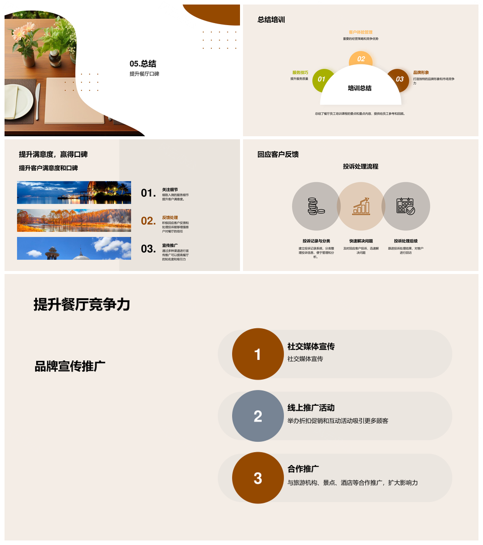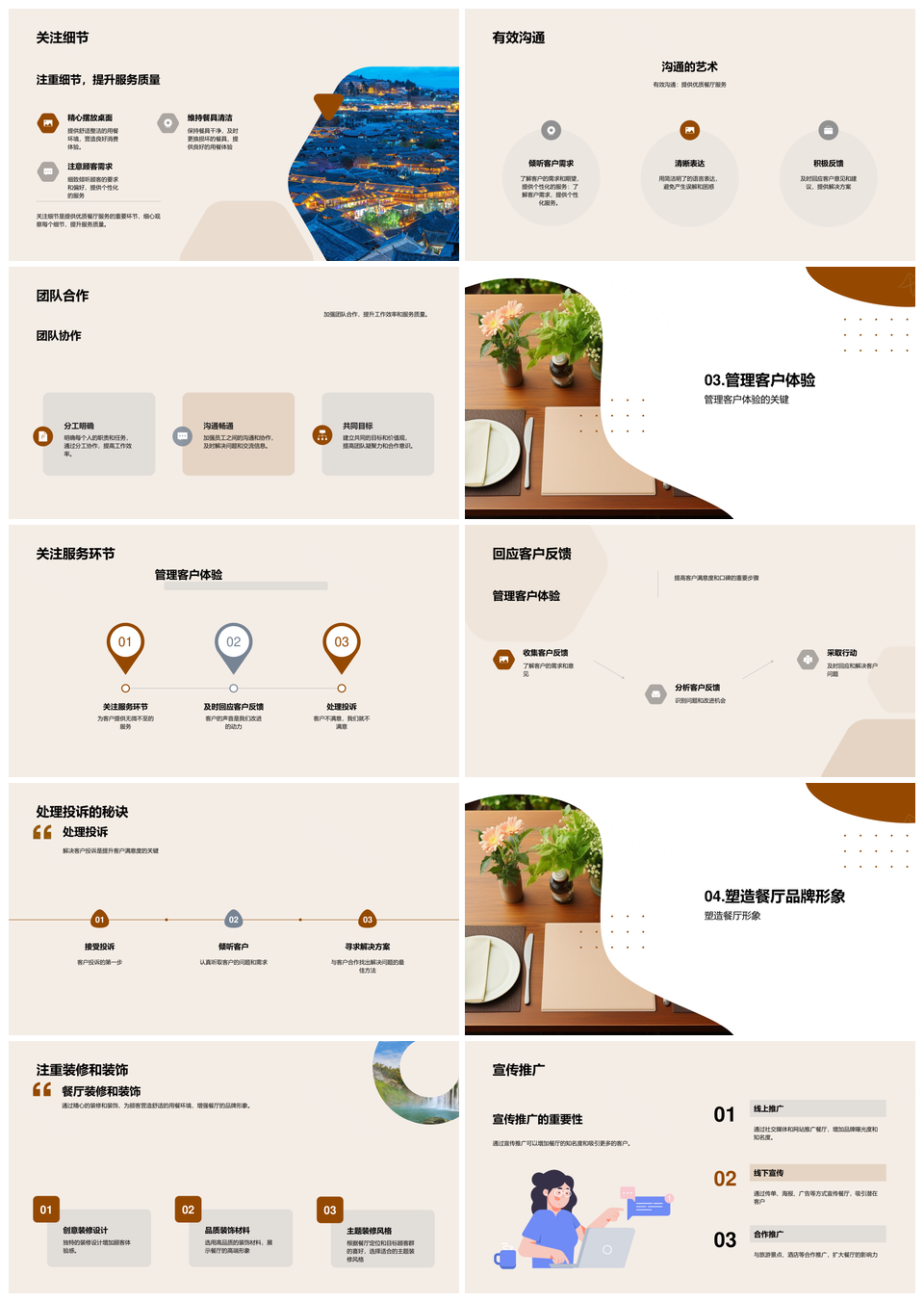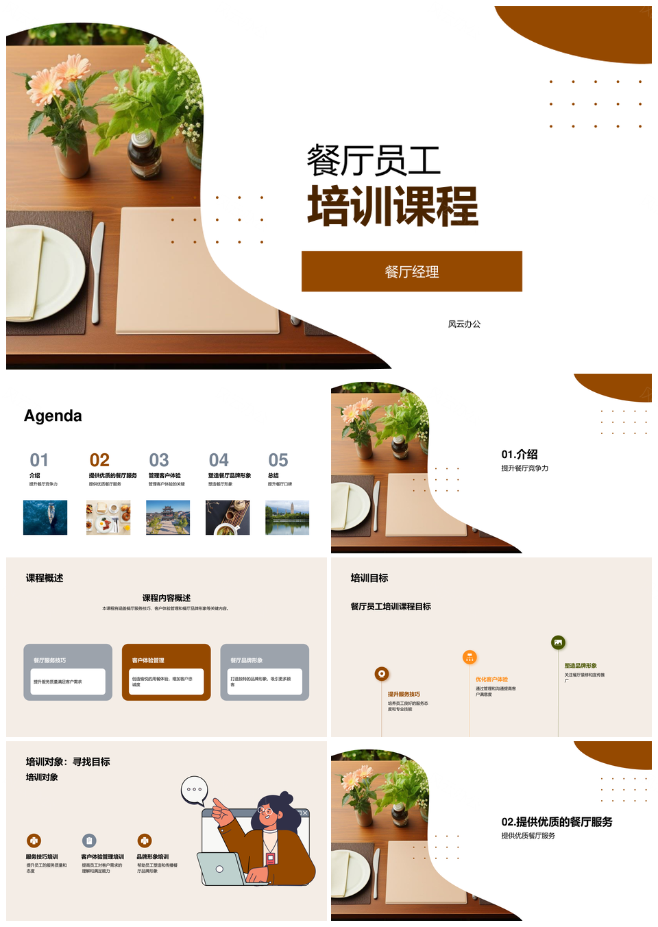 餐厅经理员工培训服务技巧客户体验品牌形象方法工具细节桌面布置PPT模板推荐
