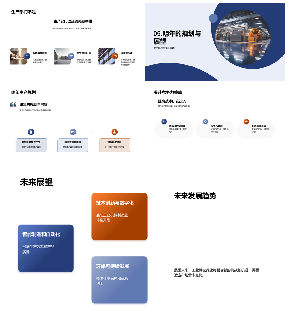 这是一张工业制造业变革生产总结挑战解决方案竞争力提升PPT模板,包含工业、制造业、变革、生产、总结、挑战、解决方案、竞争力、提升等主题内容,也可用作工业制造业变革生产、制造业变革生产总结、变革生产总结挑战、生产总结挑战解决方案、总结挑战解决方案竞争力、挑战解决方案竞争力提升、工业制造业变革、制造业变革生产、变革生产总结、生产总结挑战、总结挑战解决方案、挑战解决方案竞争力、解决方案竞争力提升、工业制造业、制造业变革等PPT场景使用。 风云办公提供的工业制造业变革生产总结挑战解决方案竞争力提升PPT模板,下载格式为pptx,一共23页,作品中文字及图均可以修改和编辑,图片更改请在作品中右键图片并更换,文字修改请直接点击文字进行修改。