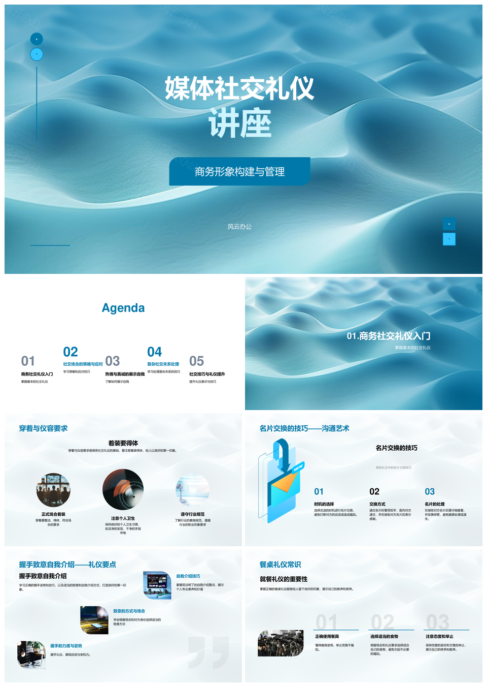 商务礼仪媒体形象传统媒体培训顾问职场合作应用PPT模板