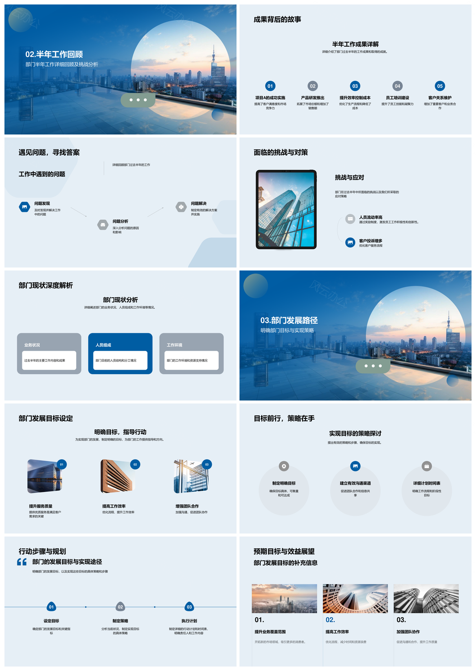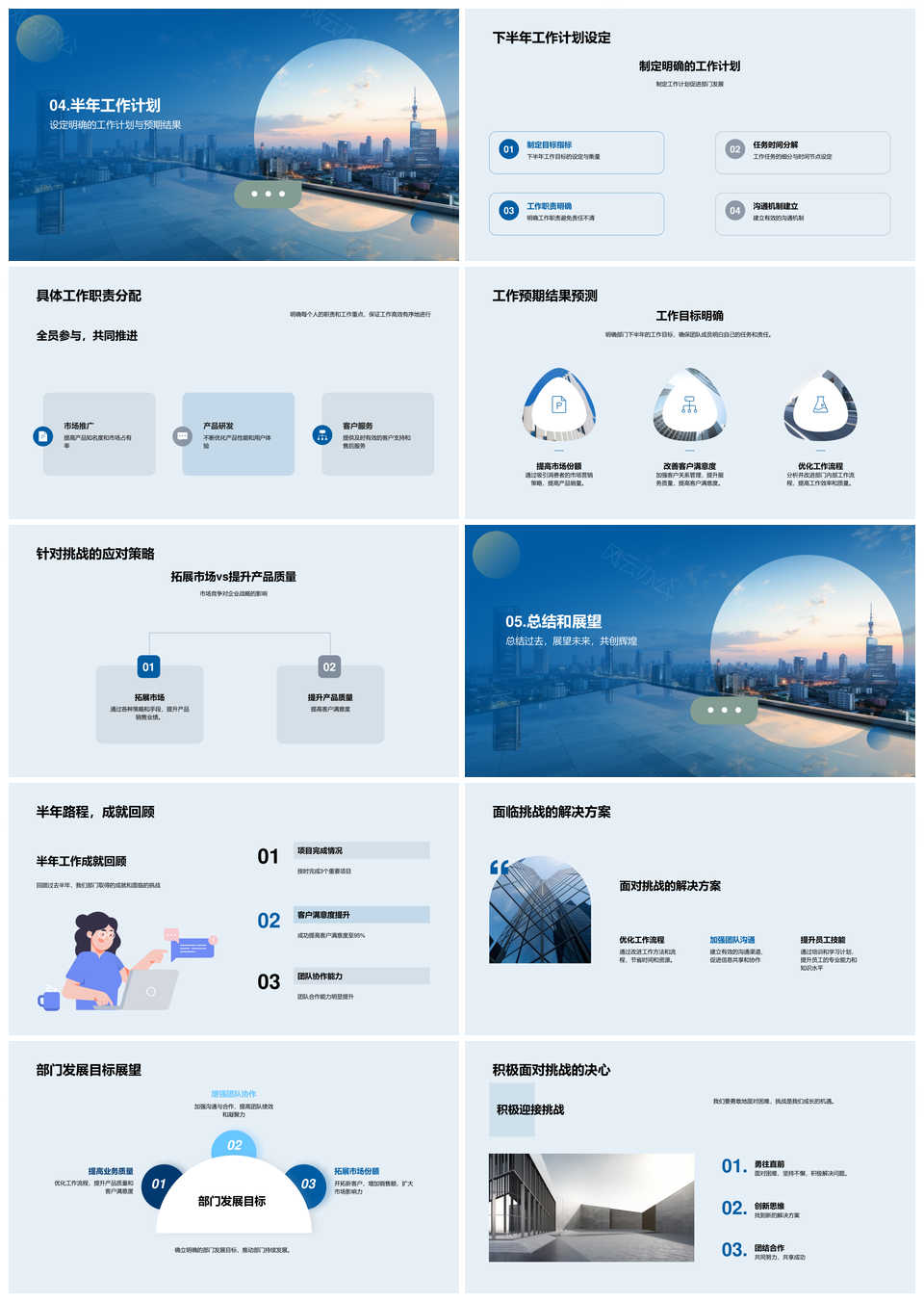 风云办公提供的部门半年团队成果现状挑战目标图解PPT模板,下载格式为pptx,一共28页,作品中文字及图均可以修改和编辑,图片更改请在作品中右键图片并更换,文字修改请直接点击文字进行修改。