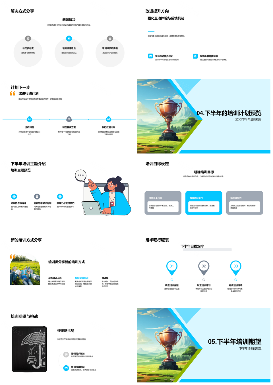 这是一张2025培训成果成效案例展示展望未来PPT模板,包含2025、培训成果、成效、案例、展示、展望、未来等主题内容,也可用作2025培训成果成效案例展示、培训成果成效案例展示展望、成果成效案例展示展望未来、成效案例展示展望未来、案例展示展望未来、培训成果成效案例、成果成效案例展示、成效案例展示展望、案例展示展望、成果成效案例、培训成果成效、2025培训成果、成效案例、案例展示、展望未来等PPT场景使用。 风云办公提供的2025培训成果成效案例展示展望未来PPT模板,下载格式为pptx,一共33页,作品中文字及图均可以修改和编辑,图片更改请在作品中右键图片并更换,文字修改请直接点击文字进行修改。