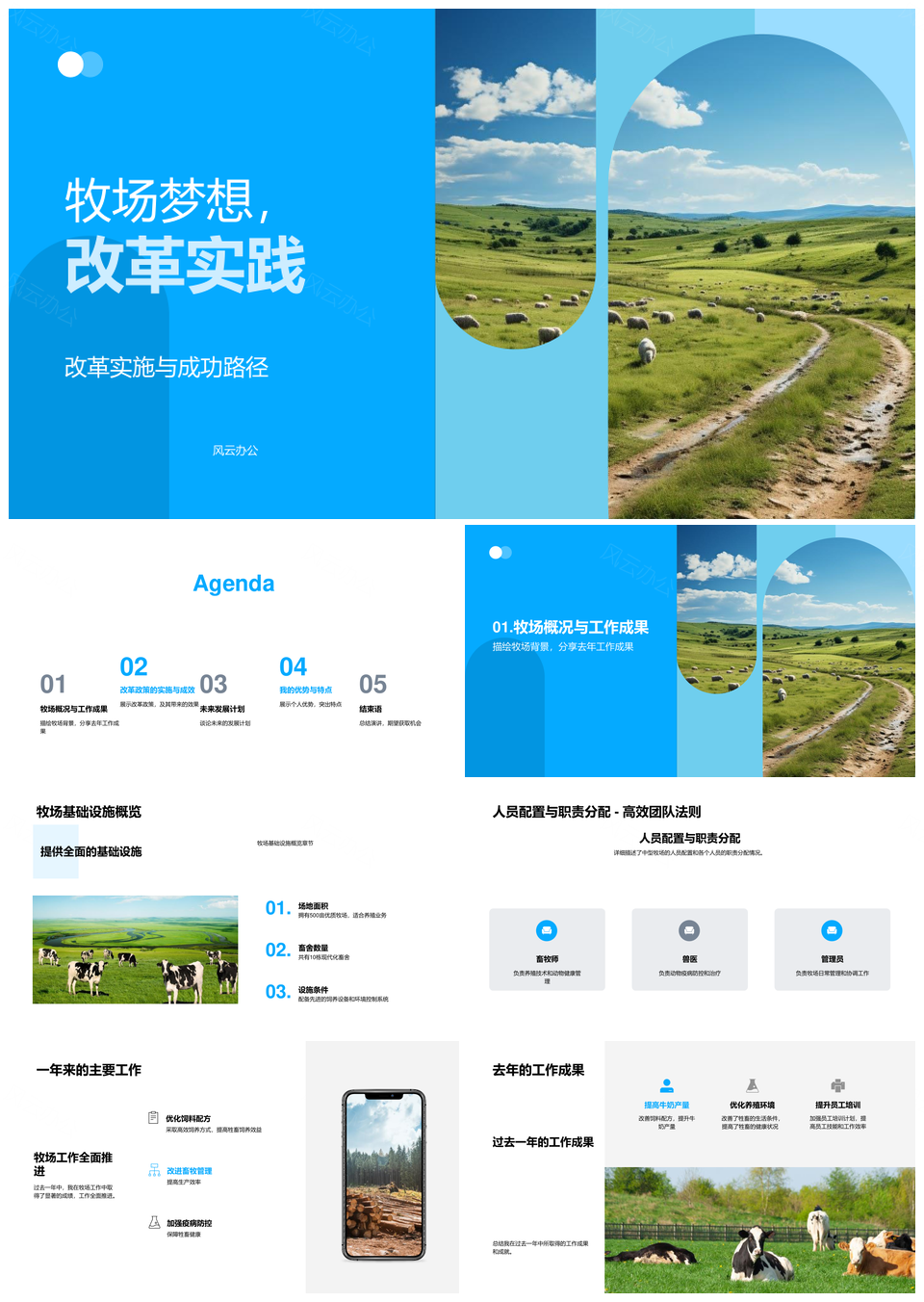 风云办公提供的牧场梦想改革实践基建管理增效PPT模板,下载格式为pptx,一共33页,作品中文字及图均可以修改和编辑,图片更改请在作品中右键图片并更换,文字修改请直接点击文字进行修改。