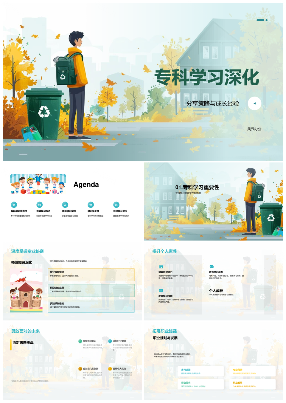 这是一张专科学习策略计划资源实践习惯热情职业规划PPT模板,包含学习策略、计划、资源、实践、习惯、热情、职业规划等主题内容,也可用作专科学习策略计划资源、职业规划实践习惯热情、专科学习策略计划、资源实践习惯热情、学习策略计划资源、职业规划实践习惯、专科学习策略、计划资源实践、学习策略计划、资源实践习惯、职业规划资源、专科学习、策略计划、实践习惯、职业规划等PPT场景使用。 风云办公提供的专科学习策略计划资源实践习惯热情职业规划PPT模板,下载格式为pptx,一共33页,作品中文字及图均可以修改和编辑,图片更改请在作品中右键图片并更换,文字修改请直接点击文字进行修改。