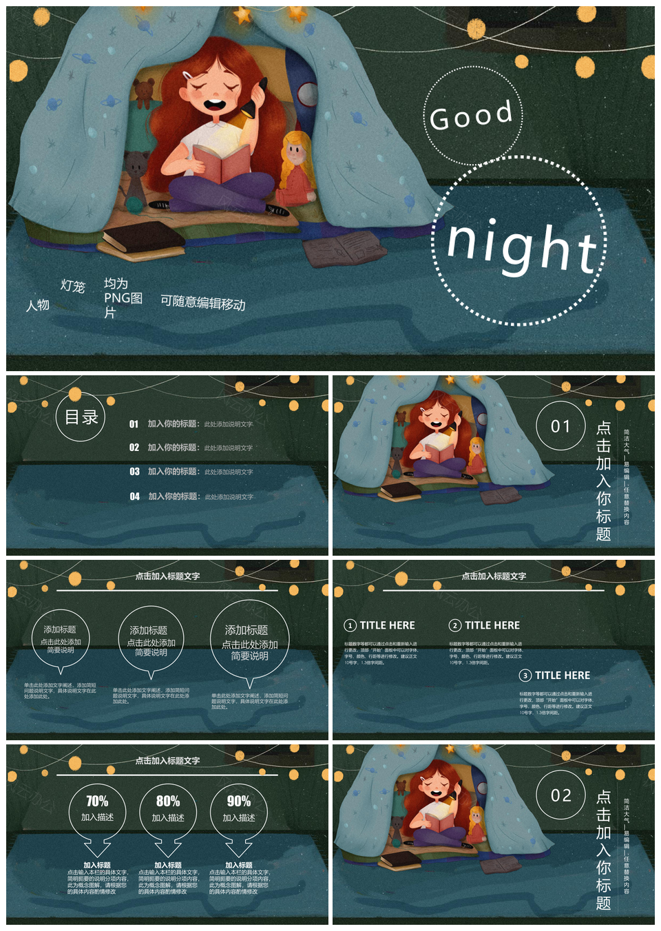 这是一张深蓝色夜晚甜美可爱睡前故事PPT模板,包含深蓝色、夜晚、甜美、可爱、睡前故事等主题内容,也可用作深蓝色夜晚睡前故事、甜美可爱睡前故事、深蓝色夜晚甜美可爱、夜晚甜美可爱睡前、深蓝色夜晚睡前、甜美可爱睡前、夜晚睡前故事、深蓝色夜晚、甜美可爱、睡前故事等PPT场景使用。 风云办公提供的深蓝色夜晚甜美可爱睡前故事PPT模板,下载格式为pptx,一共22页,作品中文字及图均可以修改和编辑,图片更改请在作品中右键图片并更换,文字修改请直接点击文字进行修改。
