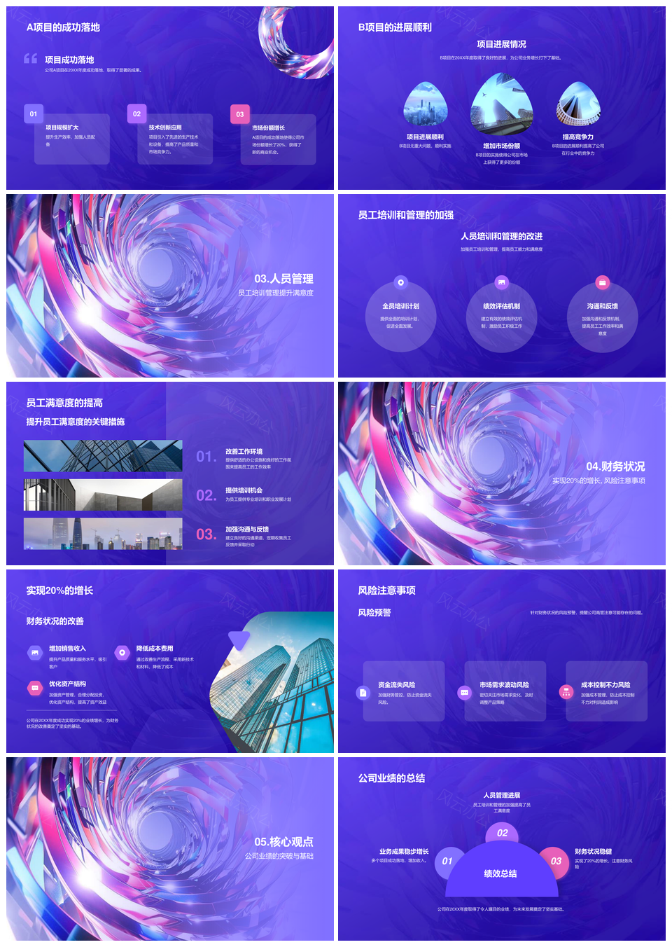 这是一张2025企业年度绩效总结业务成果人员管理员工培训财务状况PPT模板,包含2025、企业、年度、绩效、总结、业务、成果、人员、管理、员工、培训、财务、状况等主题内容,也可用作2025企业年度绩效总结、企业年度绩效总结、绩效总结业务成果、业务成果人员管理、人员管理员工培训、员工培训财务状况、企业年度绩效、年度绩效总结、绩效总结业务、总结业务成果、业务成果人员、成果人员管理、人员管理员工、管理员工培训、员工培训财务等PPT场景使用。 风云办公提供的2025企业年度绩效总结业务成果人员管理员工培训财务状况PPT模板,下载格式为pptx,一共24页,作品中文字及图均可以修改和编辑,图片更改请在作品中右键图片并更换,文字修改请直接点击文字进行修改。