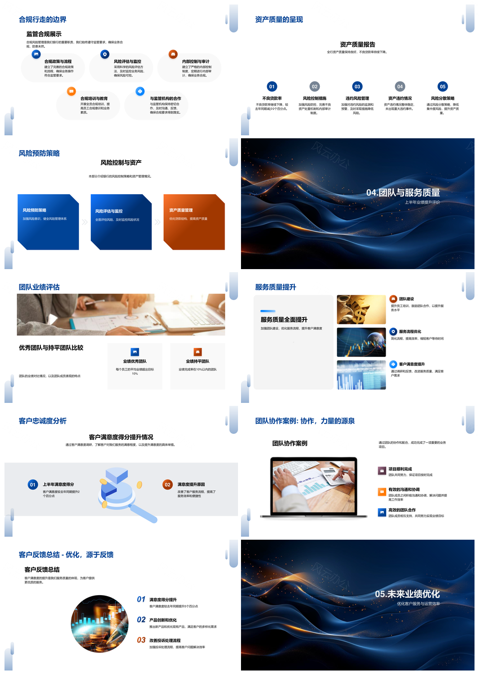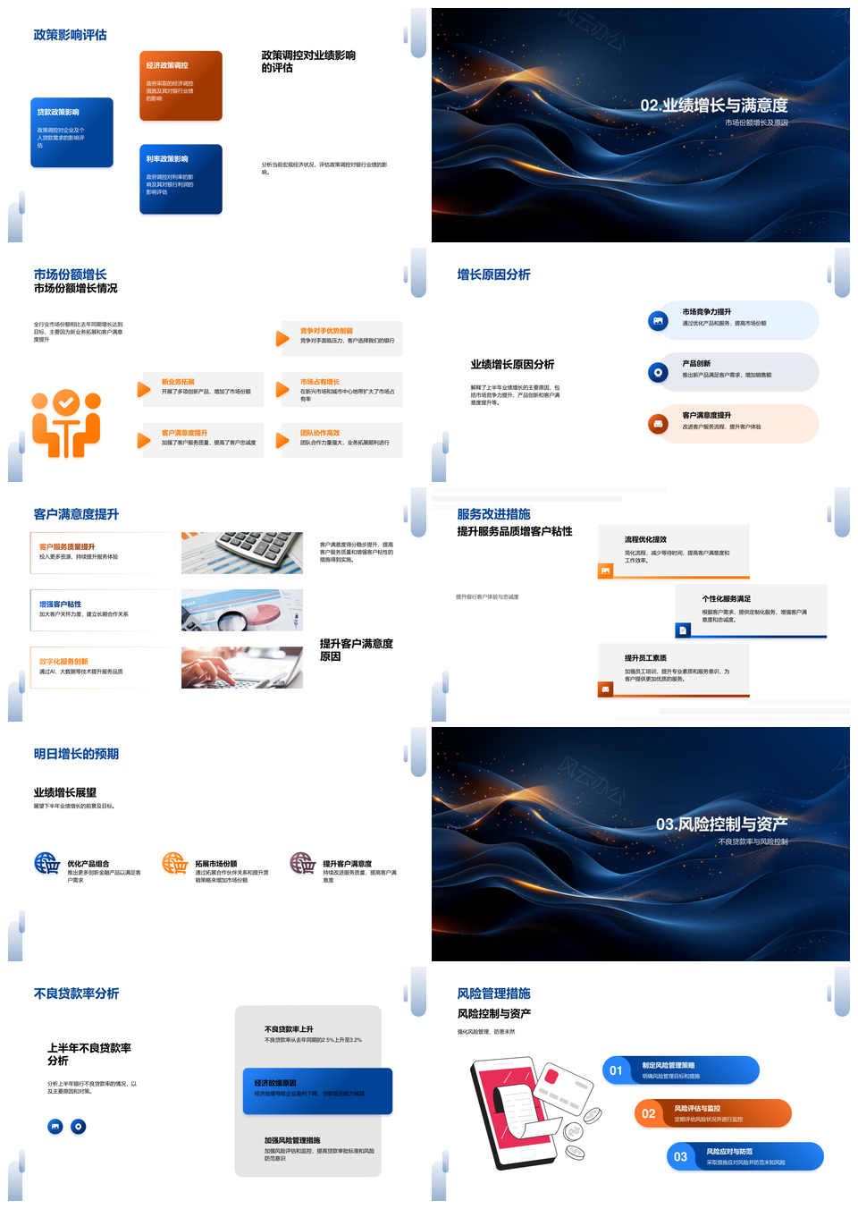 这是一张年中银行业绩走势风控市场客户目标分析PPT模板,包含年中、银行、业绩、走势、风控、市场、客户、目标、分析等主题内容,也可用作年中银行业绩走势、银行业绩走势风控、业绩走势风控市场、走势风控市场客户、风控市场客户目标、市场客户目标分析、年中银行风控市场、银行风控市场客户、年中银行业绩、银行业绩走势、业绩走势风控、走势风控市场、风控市场客户、市场客户目标、客户目标分析等PPT场景使用。 风云办公提供的年中银行业绩走势风控市场客户目标分析PPT模板,下载格式为pptx,一共33页,作品中文字及图均可以修改和编辑,图片更改请在作品中右键图片并更换,文字修改请直接点击文字进行修改。