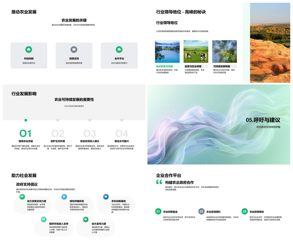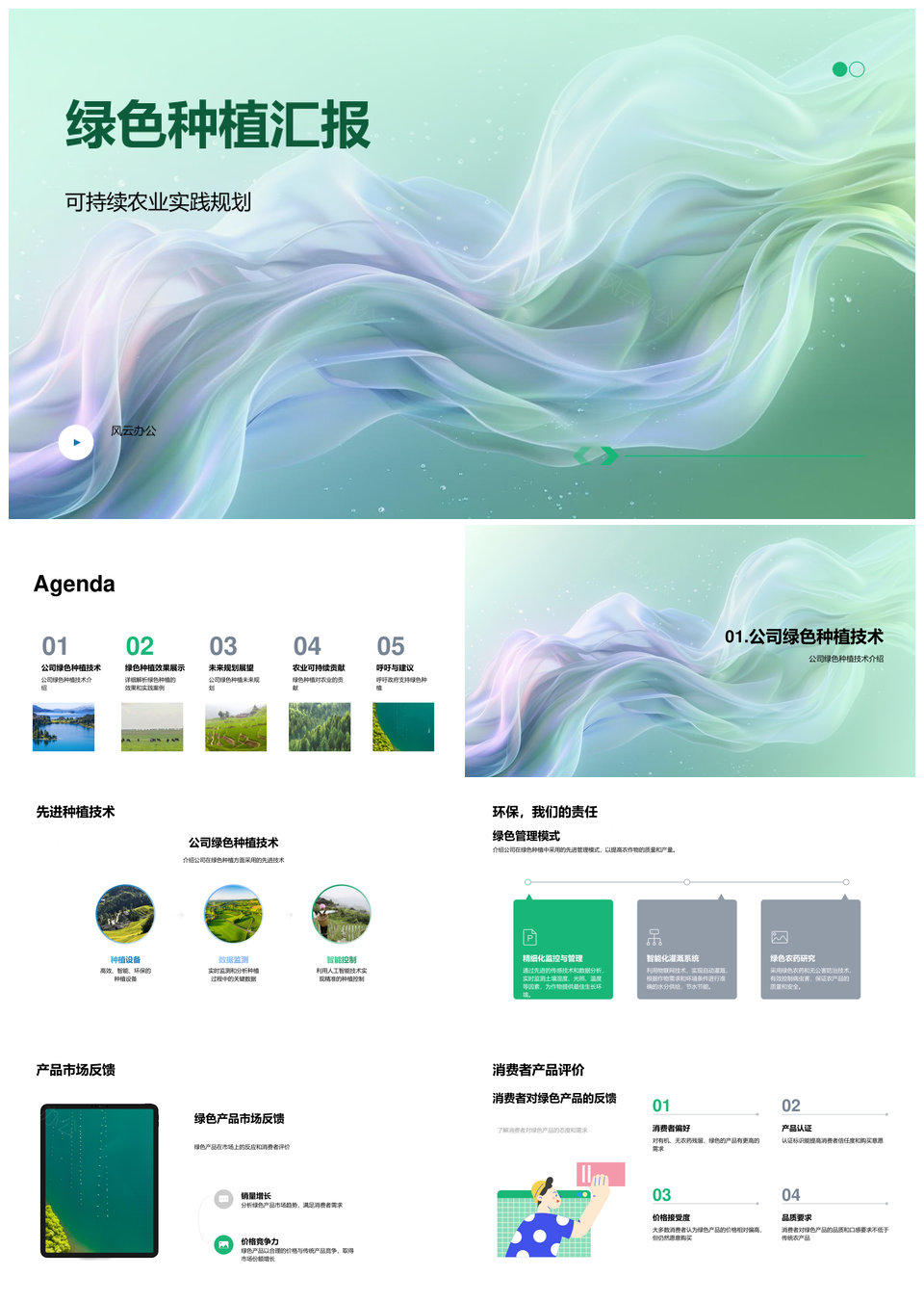 这是一张绿色种植可持续农业技术管理市场生态经济汇报PPT模板,包含绿色种植、可持续、农业技术、管理、市场、生态经济、汇报等主题内容,也可用作绿色种植可持续农业、种植可持续农业技术、可持续农业技术管理、农业技术管理市场、技术管理市场生态、管理市场生态经济、市场生态经济汇报、绿色种植可持续、种植可持续农业、可持续农业技术、农业技术管理、技术管理市场、管理市场生态、市场生态经济、生态经济汇报等PPT场景使用。 风云办公提供的绿色种植可持续农业技术管理市场生态经济汇报PPT模板,下载格式为pptx,一共24页,作品中文字及图均可以修改和编辑,图片更改请在作品中右键图片并更换,文字修改请直接点击文字进行修改。