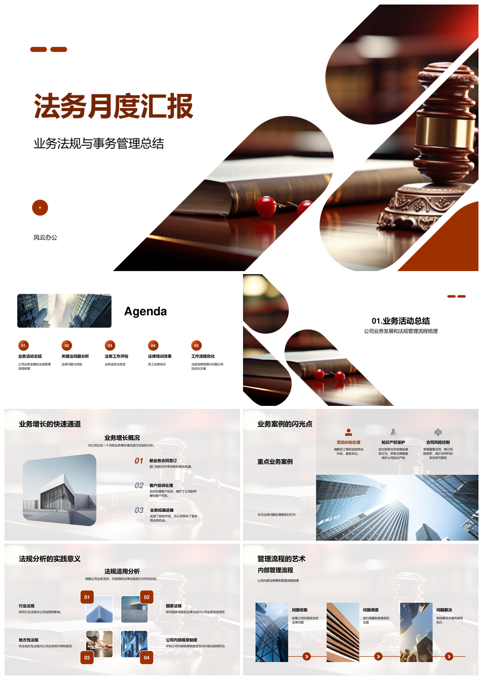 这是一张法务月报公司业务法律事务风险预测成效总结PPT模板,包含法务月报、公司、业务、法律事务、风险预测、成效、总结等主题内容,也可用作法务月报公司业务法律事务风险预测成效总结、法务月报公司业务法律事务、法务月报公司业务、法务月报公司、公司业务法律事务风险预测、公司业务法律事务、公司业务法律、公司业务、法律事务风险预测成效、法律事务风险预测、法律事务风险、法律事务、风险预测成效总结、风险预测成效、风险预测等PPT场景使用。 风云办公提供的法务月报公司业务法律事务风险预测成效总结PPT模板,下载格式为pptx,一共30页,作品中文字及图均可以修改和编辑,图片更改请在作品中右键图片并更换,文字修改请直接点击文字进行修改。