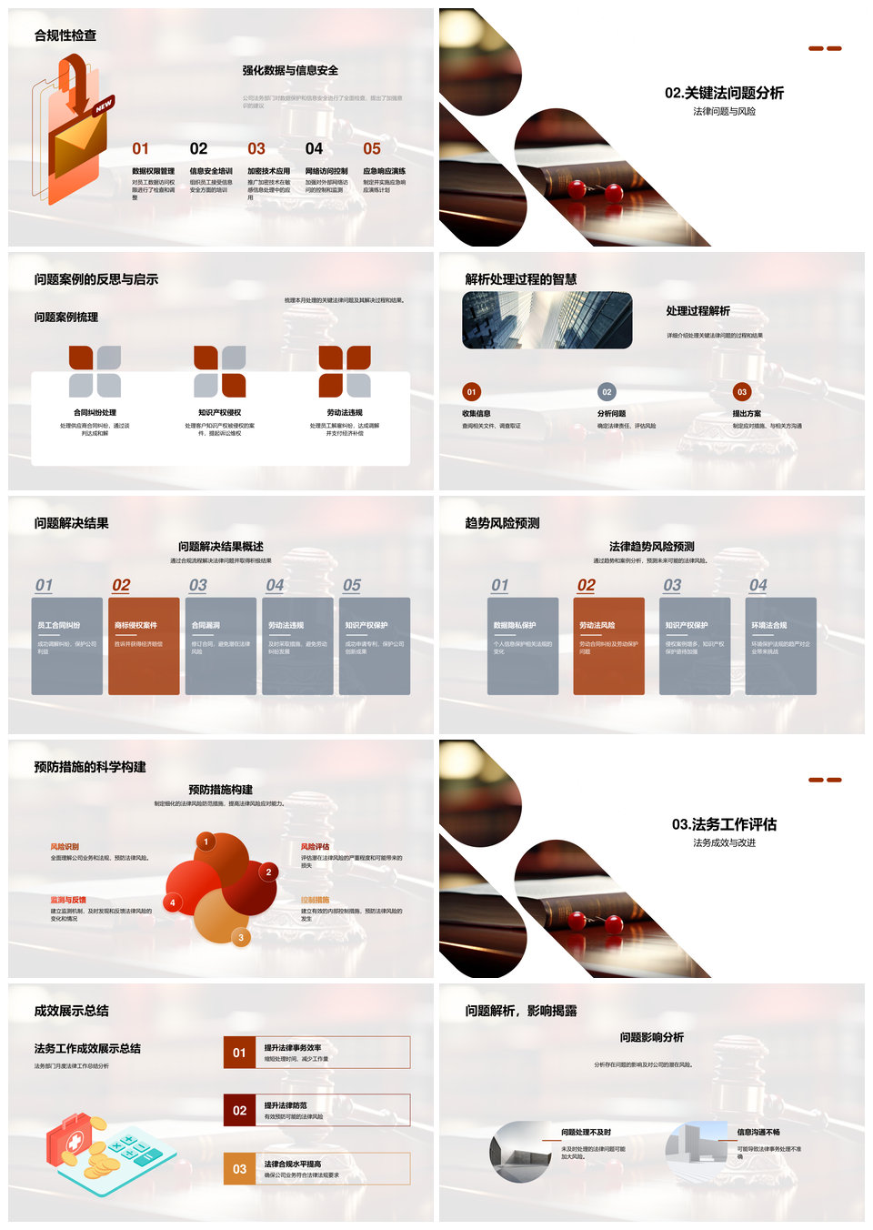 法务月报公司业务法律事务风险预测成效总结PPT模板推荐