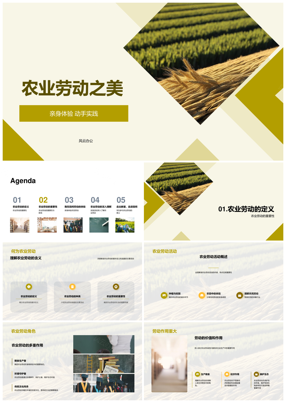 这是一张麦田躬耕亲历劳作美PPT模板,包含麦田、躬耕、亲历、劳作、美等主题内容,也可用作麦田躬耕亲历劳作、麦田躬耕亲历、麦田躬耕劳作、麦田亲历劳作、躬耕亲历劳作、麦田躬耕、麦田亲历、麦田劳作、躬耕亲历、躬耕劳作、亲历劳作等PPT场景使用。 风云办公提供的麦田躬耕亲历劳作美PPT模板,下载格式为pptx,一共28页,作品中文字及图均可以修改和编辑,图片更改请在作品中右键图片并更换,文字修改请直接点击文字进行修改。