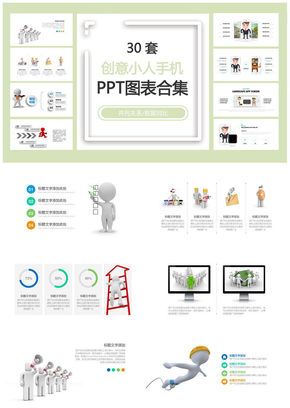 这是一张创意小人手机PPT模板,包含创意、小人、手机等主题内容,也可用作创意、小人、手机 创意小人手机、创意小人、创意手机、小人手机等PPT场景使用。 风云办公提供的创意小人手机PPT模板,下载格式为pptx,一共31页,作品中文字及图均可以修改和编辑,图片更改请在作品中右键图片并更换,文字修改请直接点击文字进行修改。
