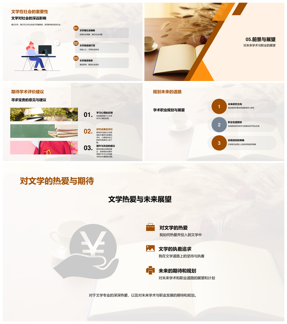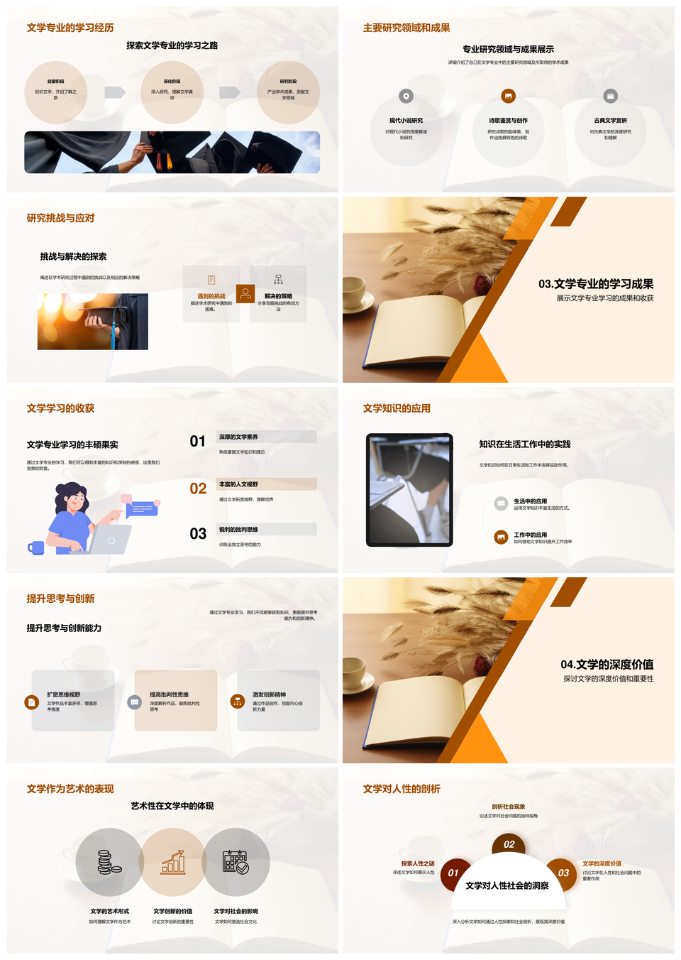 风云办公提供的文学专业研习之旅成果与展望PPT模板,下载格式为pptx,一共23页,作品中文字及图均可以修改和编辑,图片更改请在作品中右键图片并更换,文字修改请直接点击文字进行修改。