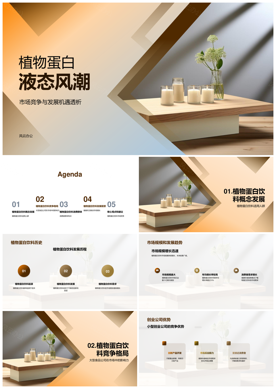 这是一张植物蛋白饮料市场竞争趋势与巨头发展分析PPT模板,包含植物蛋白、饮料市场、竞争趋势、巨头发展等主题内容,也可用作植物蛋白饮料市场竞争趋势、植物蛋白饮料市场发展趋势、市场竞争趋势巨头发展、竞争趋势巨头发展分析、植物蛋白饮料发展分析、市场发展趋势分析、趋势巨头发展分析、市场竞争趋势、植物蛋白饮料市场、植物蛋白饮料竞争、市场竞争趋势、市场发展趋势、巨头发展分析、发展趋势分析、市场趋势分析等PPT场景使用。 风云办公提供的植物蛋白饮料市场竞争趋势与巨头发展分析PPT模板,下载格式为pptx,一共21页,作品中文字及图均可以修改和编辑,图片更改请在作品中右键图片并更换,文字修改请直接点击文字进行修改。